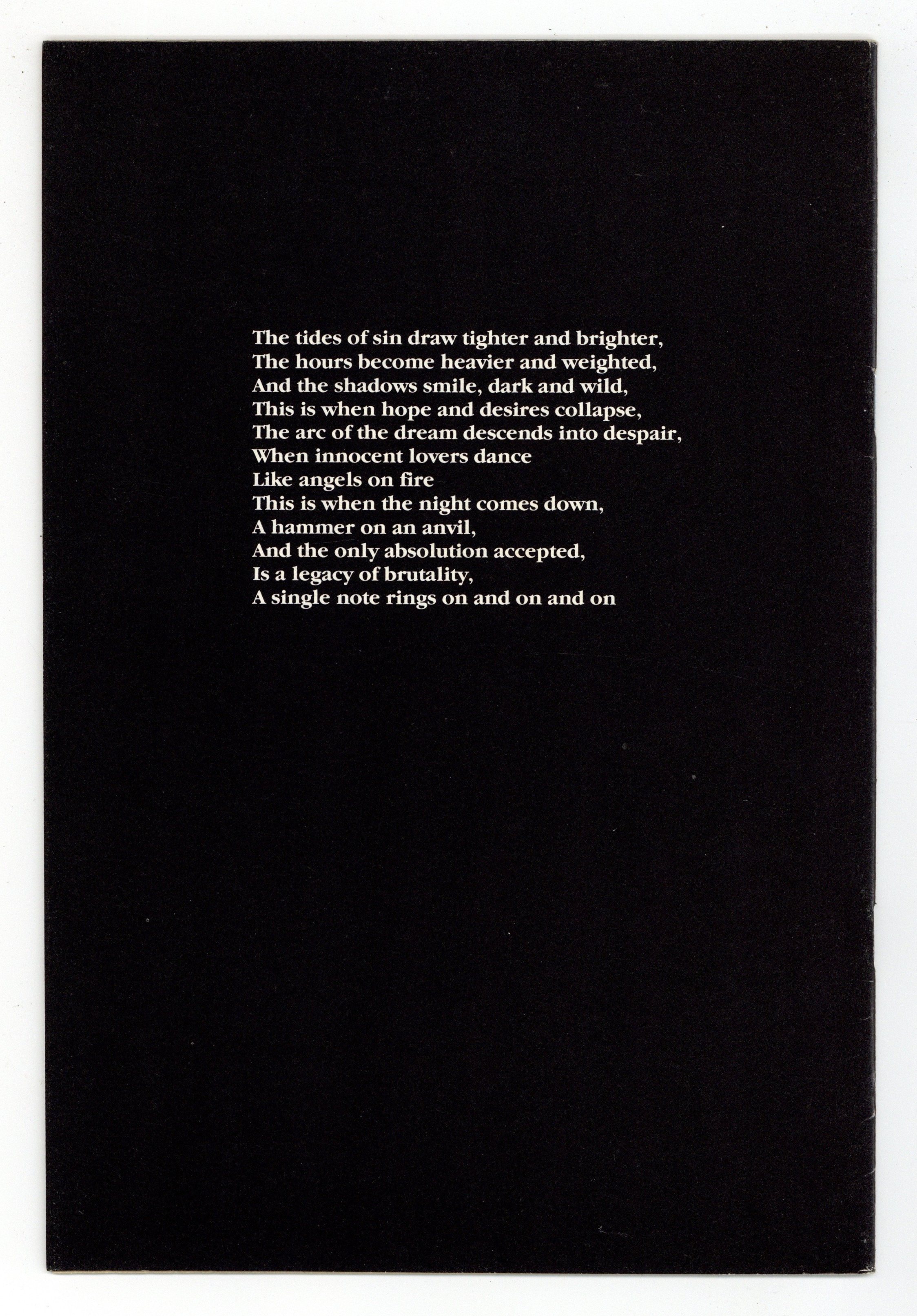 1st Printing dated 1989 on inside back cover where O'Barr signed an illustration. Book Four: Despair. Story, art and cover by James OBarr. The first Crow miniseries, introducing the deathless spirit of vengeance. The net closes on the last of The Crows murderers. Final issue of the series; a fifth issue was planned, but did not see print until the 1992 Tundra reprint. 32 pages, B&W. Mature Readers. This issue has no indicia, publication date or copyright notice. NOTE: There was no 2nd or 3rd printing of this issue. Cover price $1.95.