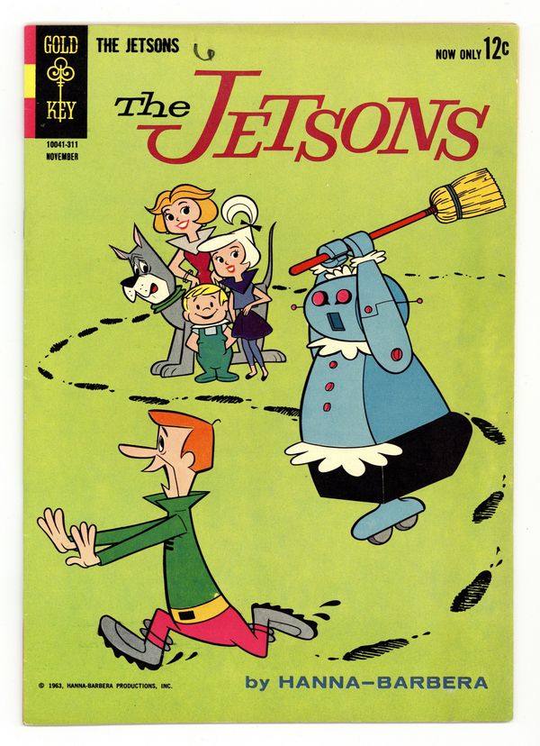 Ends Dec 8 8:41 PM CST Bid History 3 bids Current Bid $14 Your Secret Max Bid If you'd like to bid, please log in or register. Number/month on cover: 10041-311, November. Comic book version of the popular Hanna Barbera cartoon show. Issue features the Jetsons in "Winning Back Father," "The No-Place-To-Play-Day," "Maid of Metal," and "Having a Horsie Holiday." Issue also has Snooper and Blabber in "The Case of the Human Missile," one-page educational strips, and a one-page text feature "The Big Election." Back cover is pinup of front cover illustration. Story and art credits: unknown. Cover price $0.12.