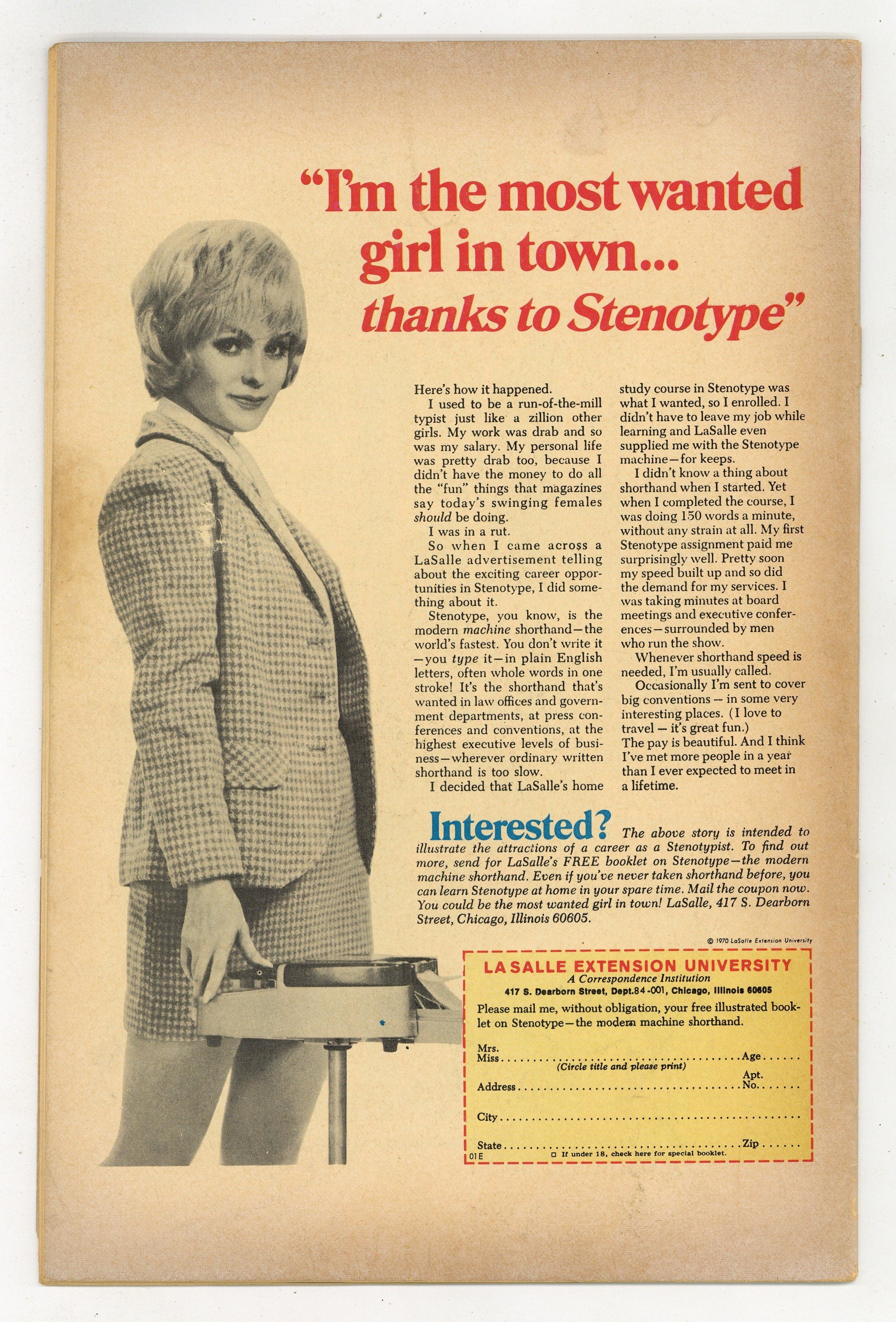 Cover by A. Martinez & Jean Elier. Stories by unknown. Art by A. Martinez & Jean Elier, Charles Nicholas & Vince Alascia and Jack Abel. As an airline stewardess, she has dated the most interesting men in the world! So why does this simple cowboy...fascinate her? Find out in..."Country Boy"! Also featuring: "Will Anyone Care?" and "Take a Letter, Darling"! Plus: 1-page Choosing a Career text piece "Bank Teller" by Jeannette Copeland. 32 pages, full color. Cover price $0.20.