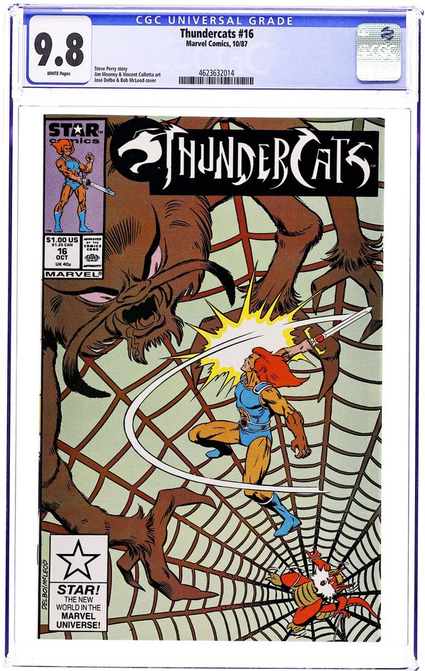 Direct Edition. "The Queen of Eight Legs!" Based on the screenplay by Steve Perry. Adapted by Steve Perry. Art by Jim Mooney and Vincent Colletta. Can Lion-O and Snarf hope to survive when they fall into the trap of Mumm-Ra, the Ever-Living? 32 pages, FC Cover price $1.00.
