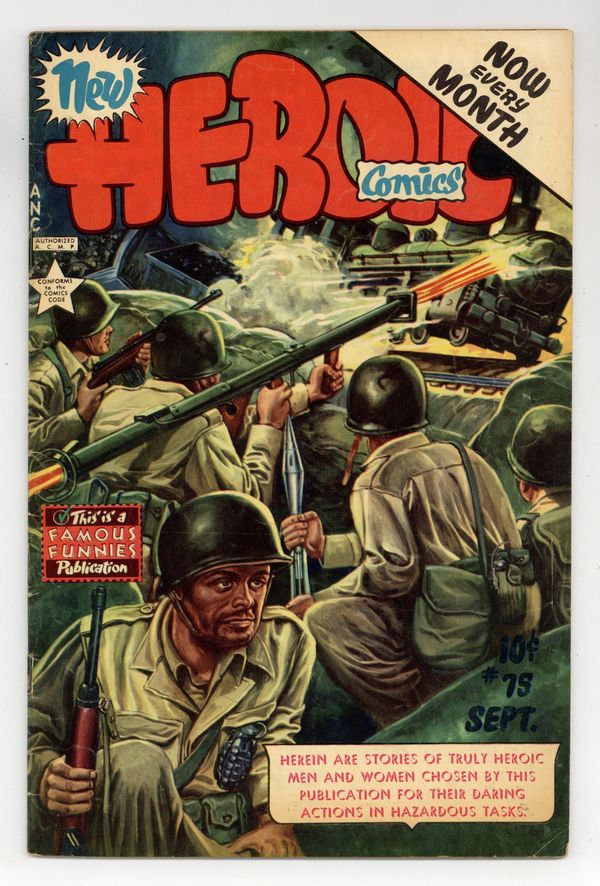 Painted cover by Jack Berrill. Stories and art by Ed Moore and Frank Frazetta. Non-fiction comics featuring true tales of heroism from everyday people and courage on the battlefield. An executive uses artificial respiration to revive a drowned man, and a classic religious PSA, both featuring early art by fantasy and comics legend Frank Frazetta. A reporter joins soldiers on the front lines in Korea. Combat Newsman; Brought Back to Life; Supporting Fire; Devotion to Duty; Soldier of Salvation; Silver Star Sgt. Sager; Alert Youth; Babysitter Savior; Firefighting Postman; With the Help of God; The Glory Road; God Sent Me; Coole's Convoy; Truck Full of Human Freight; Baby Knows Best; Heroic Achievements. 32 pages, Full Color. Cover price $0.10.