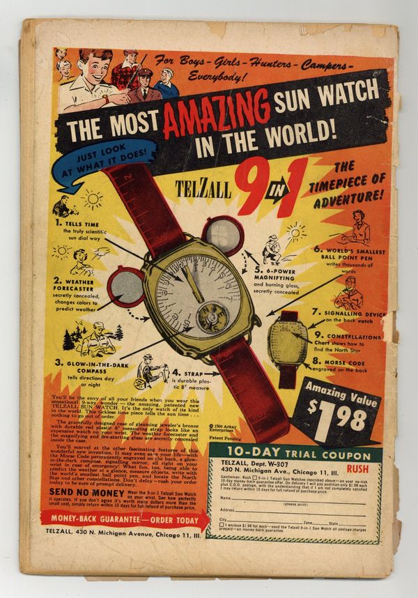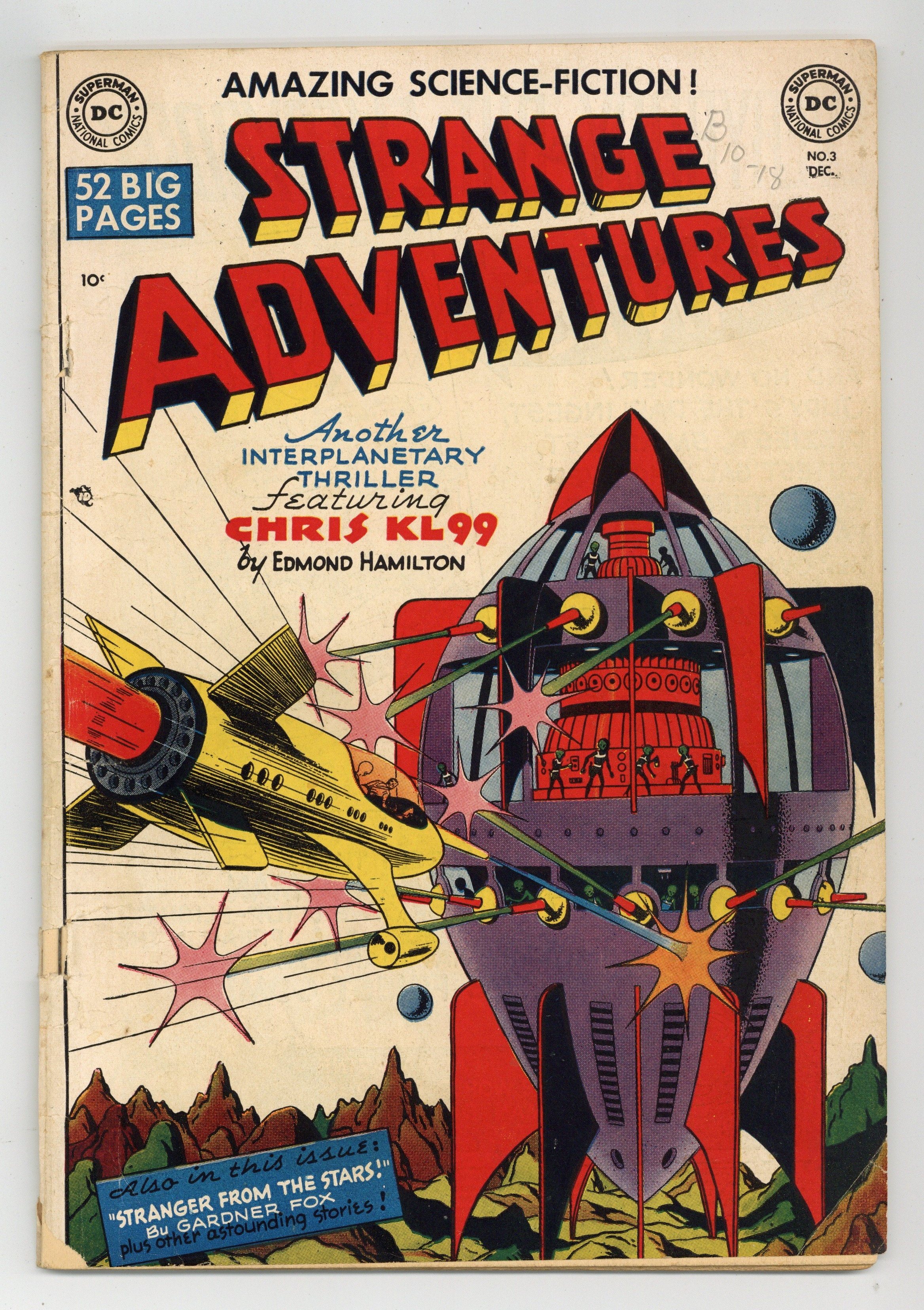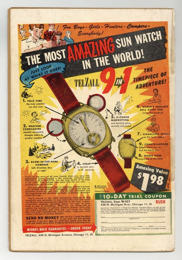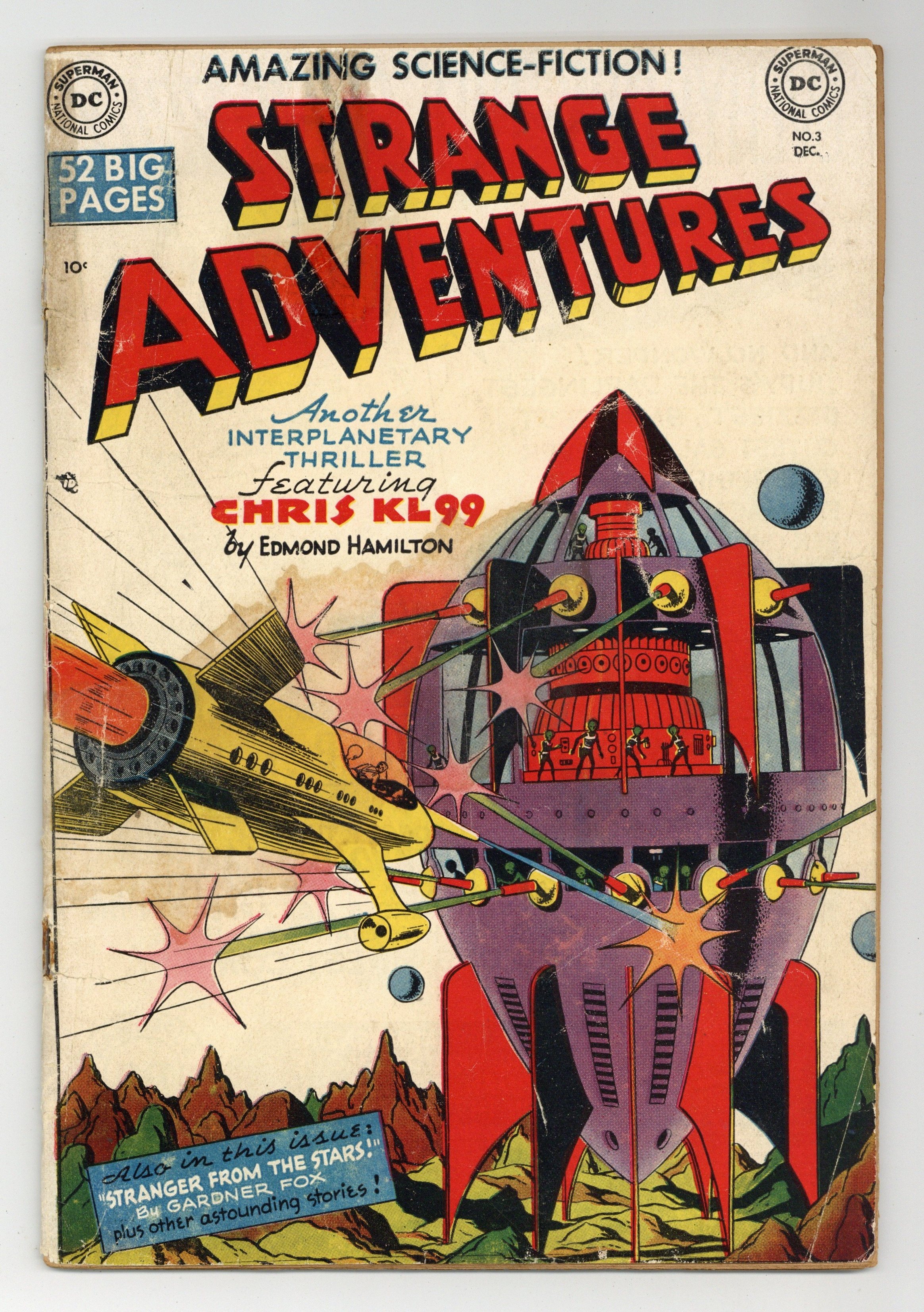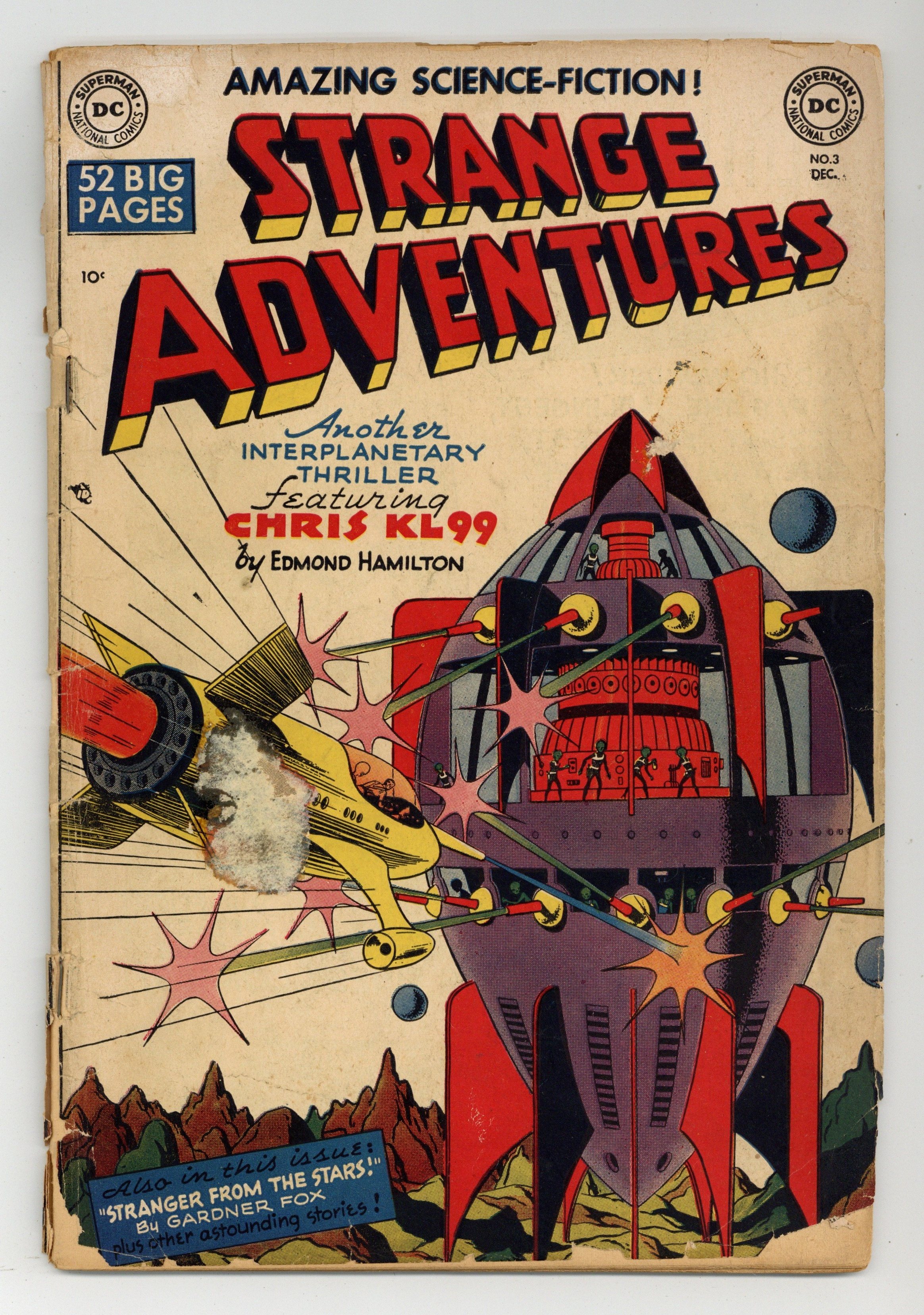 Written by Edmond Hamilton. Art by Howard Sherman. Cover by Howard Sherman. Cosmic raiders steal Earth's Brooklyn Bridge and Statue of Liberty for the metal they contain. Ad for DCs A Date with Judy. Written by Gardner Fox (as Robert Starr). Art by Jim Mooney and Ray Burnley. The Jenkins's move into a house that caters to their every need. Written by H. L. Gold. Art by Curt Swan and Jon Small. Hitler is arrested and tried by Martians who condemn him to eternal exile in space. Written by Gardner Fox. Art by Dan Barry. A shape-shifting extraterrestrial hides six atom bombs in Earth cities. 52 Pages, Full Color. Cover price $0.10.