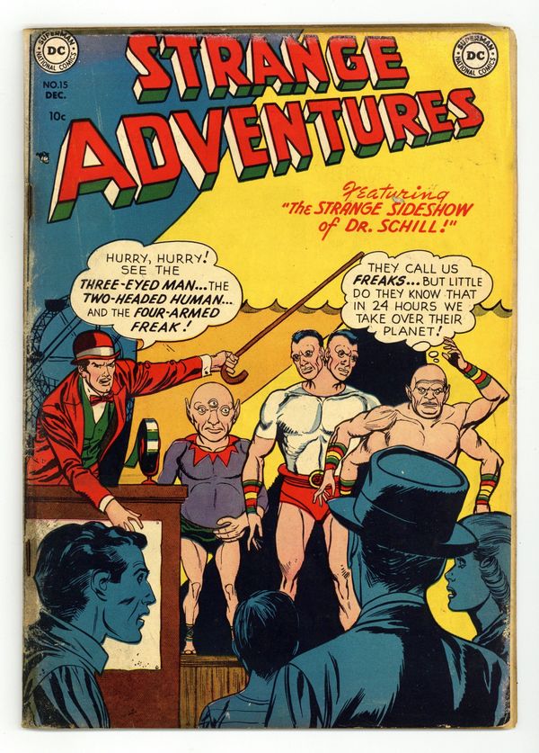 Captain Comet in "Captain Comet--Enemy of Earth" (script by Edgar Ray Merritt, art by Murphy Anderson), "The Strange Sideshow of Dr. Schill," "The 1000-Year-Old Man" (script by Gardner F. Fox), and The Adventures of Chris KL-99 in "The Rival Columbus of Space!" One-page Tootsie Roll ad, "Pete the Flash Scores for Captain Tootsie" by Bill Schreiber. Gil Kane cover and art. 44 Pages, Full Color. Cover price $0.10.