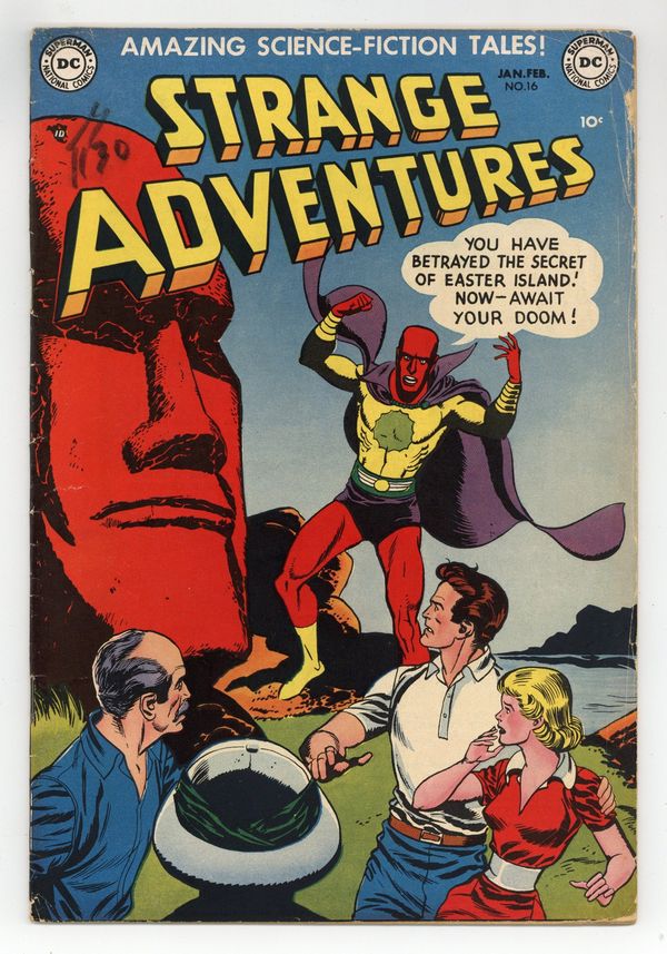 Captain Comet in "The Ghost of Captain Comet!" (script by Edgar Ray Meritt); "The Secret of Easter Island!" (script by Edmond Hamilton), and "The Touch of Death" (script by Gardner F. Fox). Superboy stars in a one-page public service announcement, "Share With Others!" Gil Kane cover pencils. 36 Pages, Full Color. Cover price $0.10.