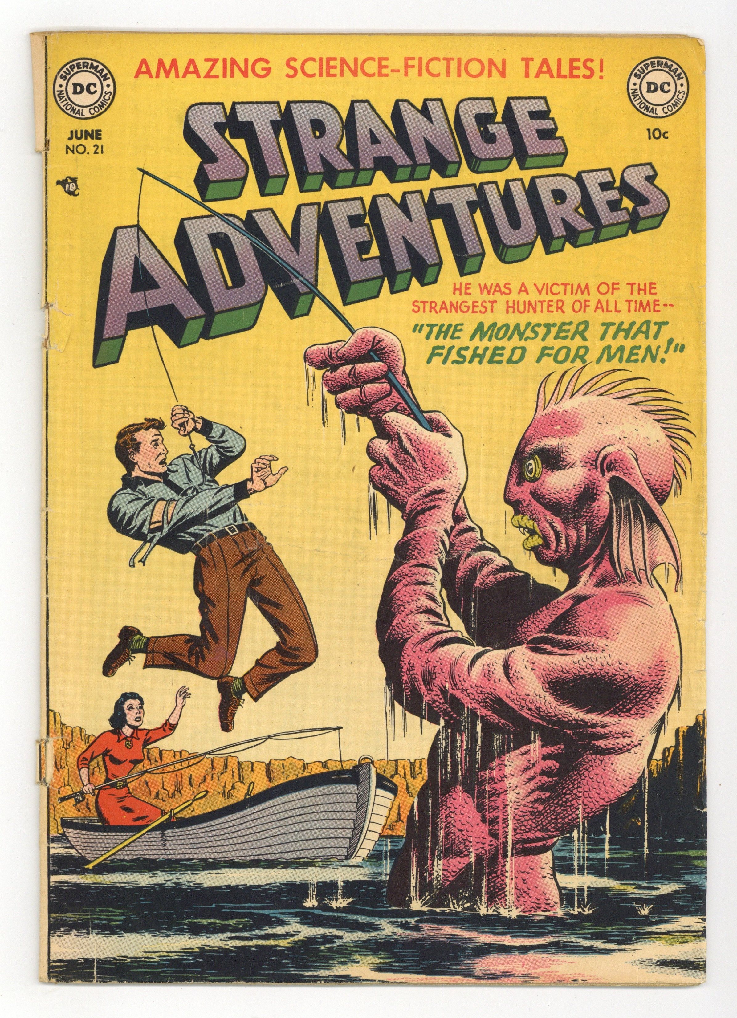 Captain Comet stars in "Eyes of Other Worlds" (art by Carmine Infantino?); "The Genius Epidemic" (script by Gardner F. Fox); "The Monster That Fished for Men" (script by Jack Miller; art by Murphy Anderson?); and "The Boy Who Changed the Future" (script by John Osgood; pencils by Gil Kane?). Anderson cover. 36 Pages, Full Color. Cover price $0.10.