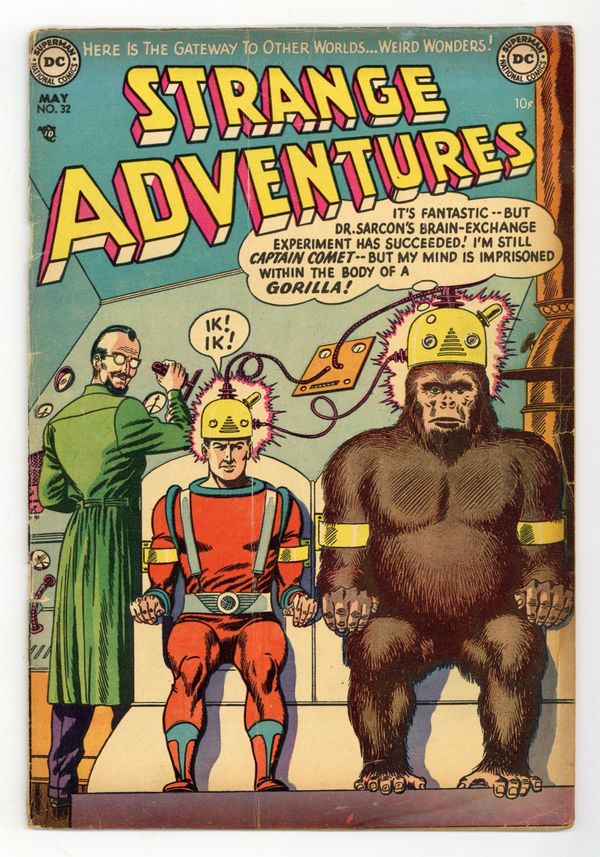 Cover by Murphy Anderson. Stories by John Broome and Sid Gerson. Art by Murphy Anderson, Bernie Krigstein, Howard Sherman, Frank Giacoia, Joe Giella and Sy Barry. Here is the gateway to other worlds...weird wonders! Dr. Sarcon's brain-exchange experiment has succeeded! He's still Captain Comet, but his mind is imprisoned within the body of a gorilla in "The Challenge of Man-Ape the Mighty!" by John Broome, Murphy Anderson and Joe Giella. Also featuring: "The Atomic Invasion!" by Sid Gerson and Bernie Krigstein; "The Human Bullet!" by Sid Gerson and Howard Sherman; and "Probability Zero" by Sid Gerson, Frank Giacoia and Sy Barry. Plus: half-pager "Around the World in 96 Minutes"; untitled Science Says You're Wrong If You Believe That 1-pager; 1-pager "Dizzy Whirl of Earth!" with art by Mort Drucker; and 2 pages of Spotlight on Science articles. 32 pages, full color. Cover price $0.10.