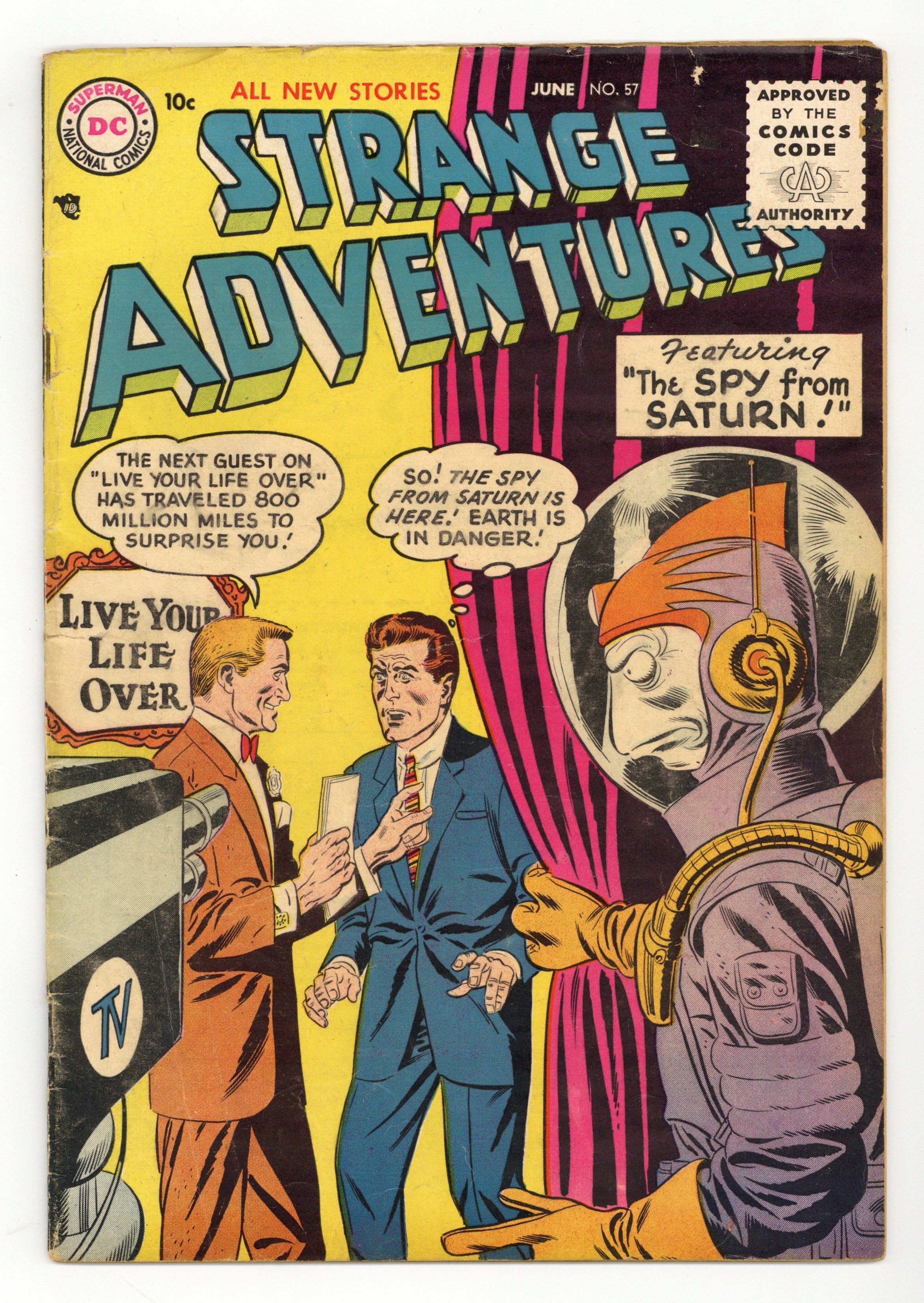 "The Spy From Saturn," "The Moonman and the Meteor!" (pencils by Carmine Infantino), "The Riddle of Animal X!" (pencils by Gil Kane), and "Spaceship Under the Earth!" Kane cover pencils. 36 Pages, Full Color. Cover price $0.10.