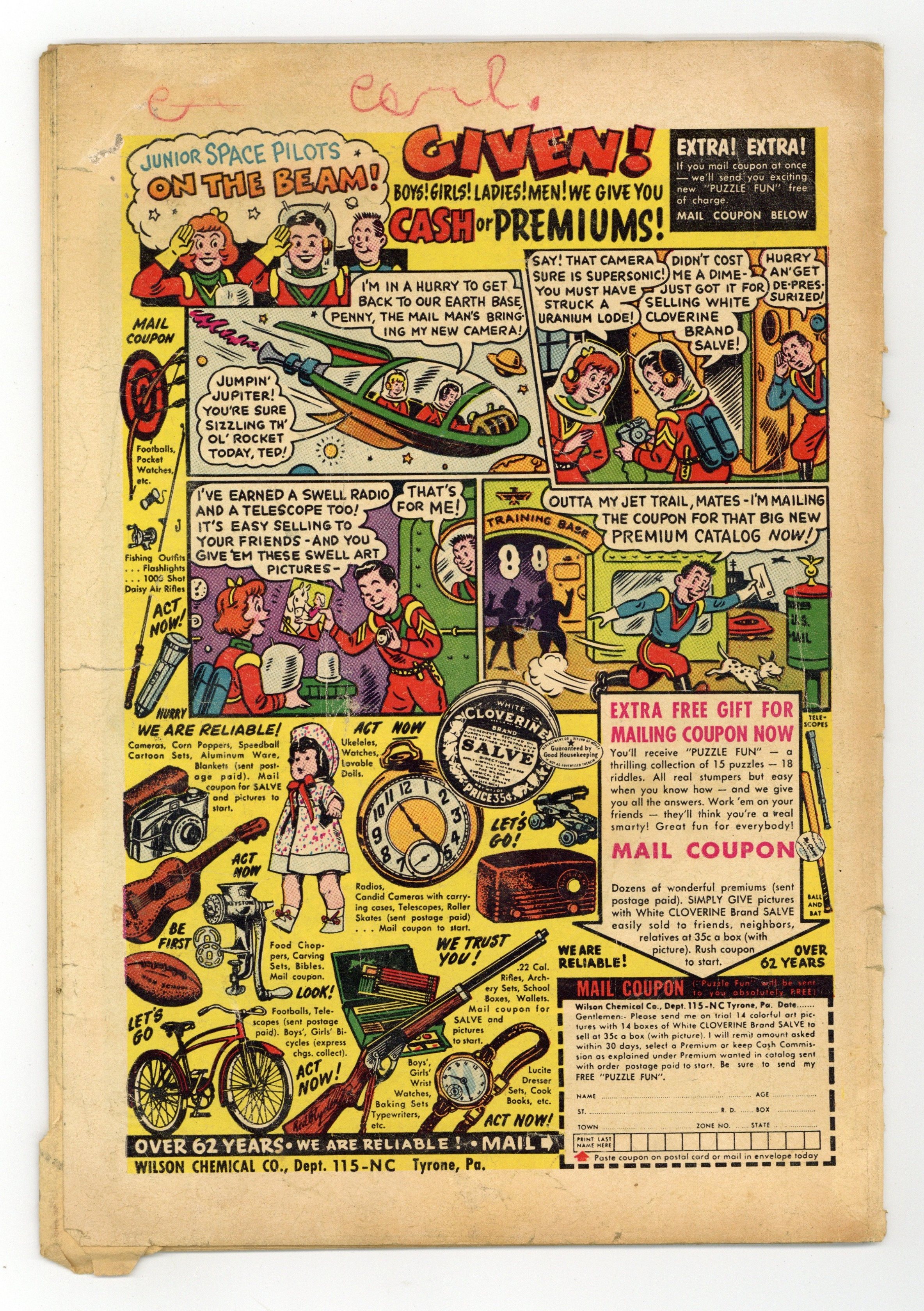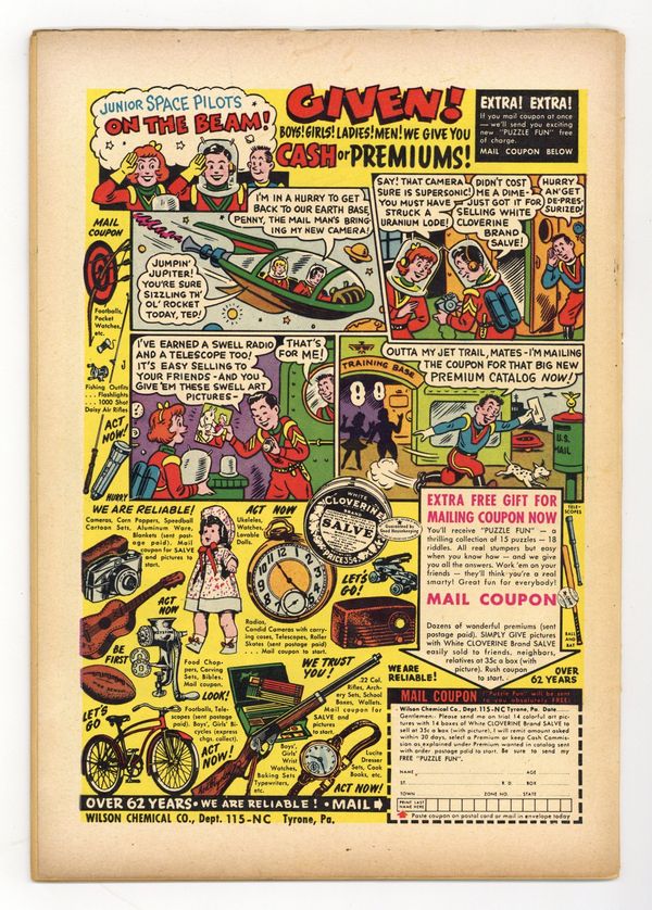 "The World That Slipped Out of Space!" (pencils by Carmine Infantino), "The Incredible Eyes of Arthur Gail," "The Paul Revere of Time!" (pencils by Gil Kane), and "The Mental Star-Rover!" Kane cover pencils. 36 Pages, Full Color. Cover price $0.10.
