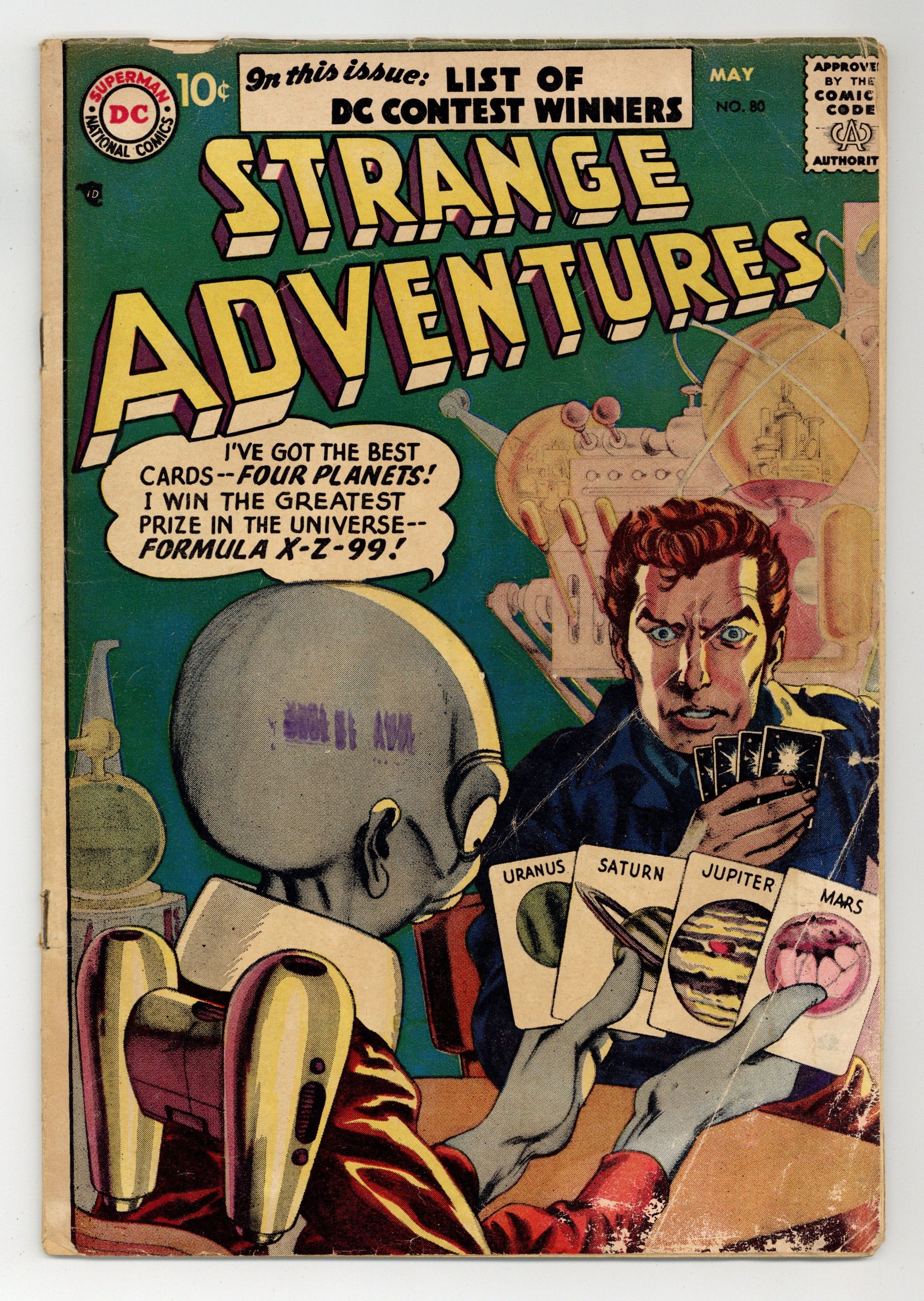 "Mind Robbers of Venus!" (pencils by Gil Kane), "The Worlds That Switched Places," "The Anti-Invasion Machine!" (art by Carmine Infantino), and "The Man Who Cheated Time!" Kane cover. 36 Pages, Full Color. Cover price $0.10.