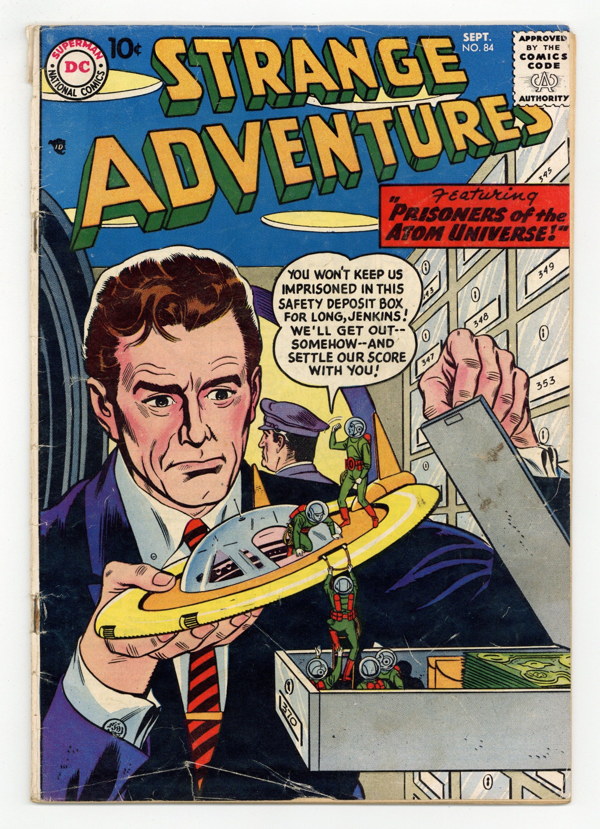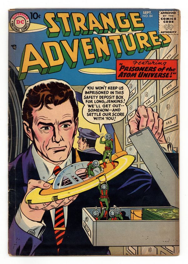 "Prisoners of the Atom Universe" (pencils by Carmine Infantino), "The Radioactive Invasion of Earth," "Riddle of the Walking Robots!" ((pencils by Infantino), and "The Toy That Saved the World!" Gil Kane cover pencils. 36 Pages, Full Color. Cover price $0.10.