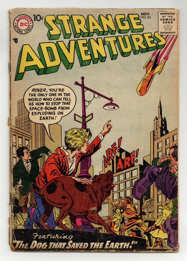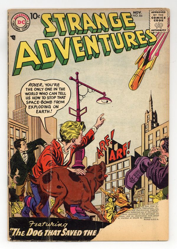 $32.50"The Dog That Saved the Earth!" (pencils by Carmine Infantino), "Interplanetary Space-Feud," "The One-Hour Invasion of Earth," and "The Waether War of 1977!" Kane cover pencils. 36 Pages, Full Color. Cover price $0.10.