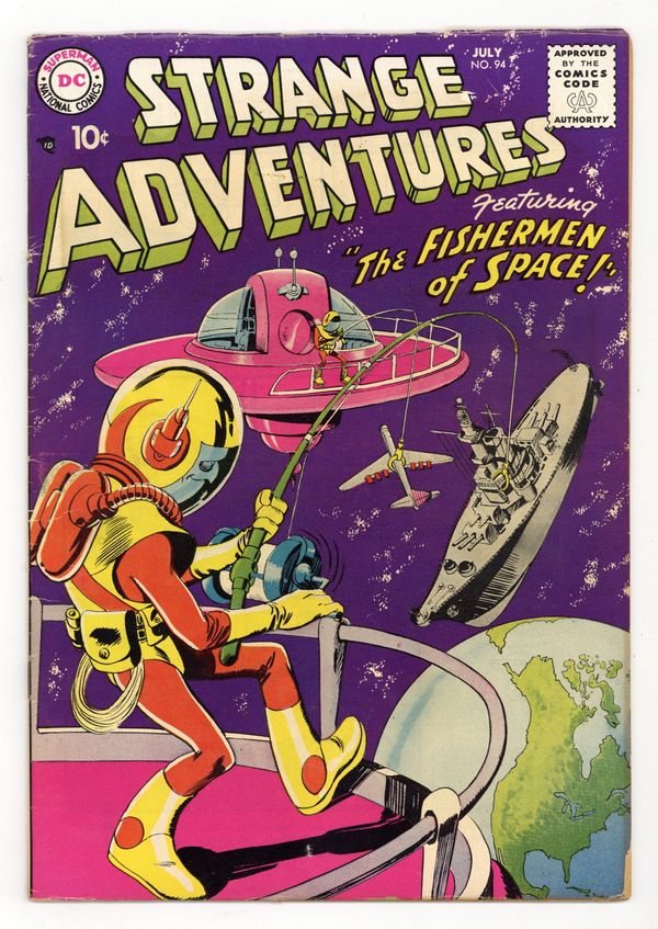 "The Fishermen of Space!" (pencils by Carmine Infantino), "Secret of the Planetary Cones," "The Boy in the Moon," and "Elevator to the Future!" (art by Murphy Anderson). Gil Kane cover. 36 Pages, Full Color. Cover price $0.10.