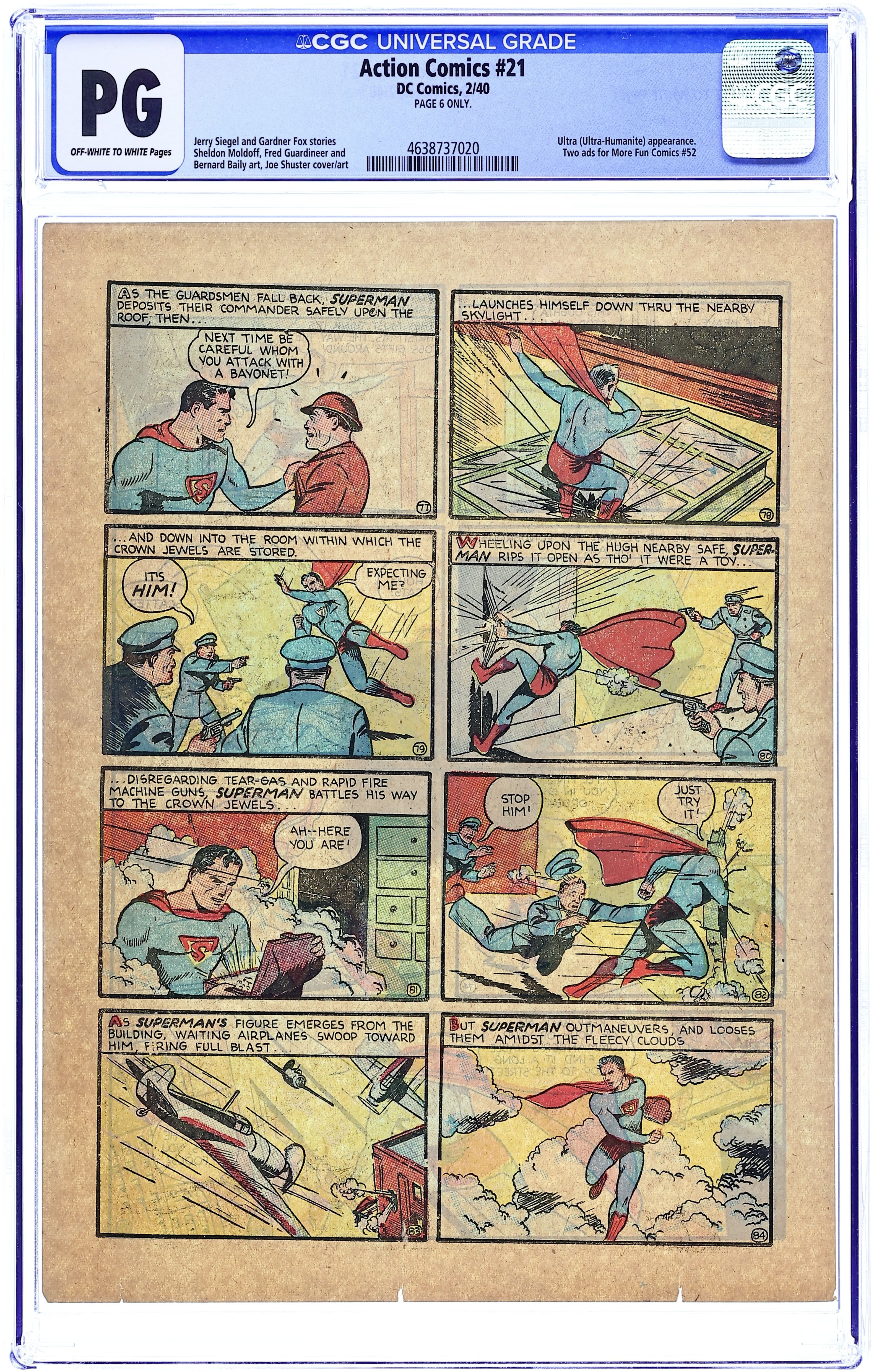 Cover art by Joe Shuster and Paul Cassidy. Superman story, script by Jerry Siegel, art by Joe Shuster. Pep Morgan story, script by Gardner F. Fox, art by Fred Guardineer (as Gene Baxter). Chuck Dawson story, art by Homer Fleming. Clip Carson story, art by Sheldon Moldoff. Tex Thomson story, art by Bernard Baily. Three Aces story, art by Bert Christman (as Christopher). The Deaths on the Moor starring Zatara Master Magician, script by Gardner F. Fox, art by Fred Guardineer. 68 Pages, Full Color. $.10 2 ads for More Fun #52 (1st Spectre). Cover price $0.10.