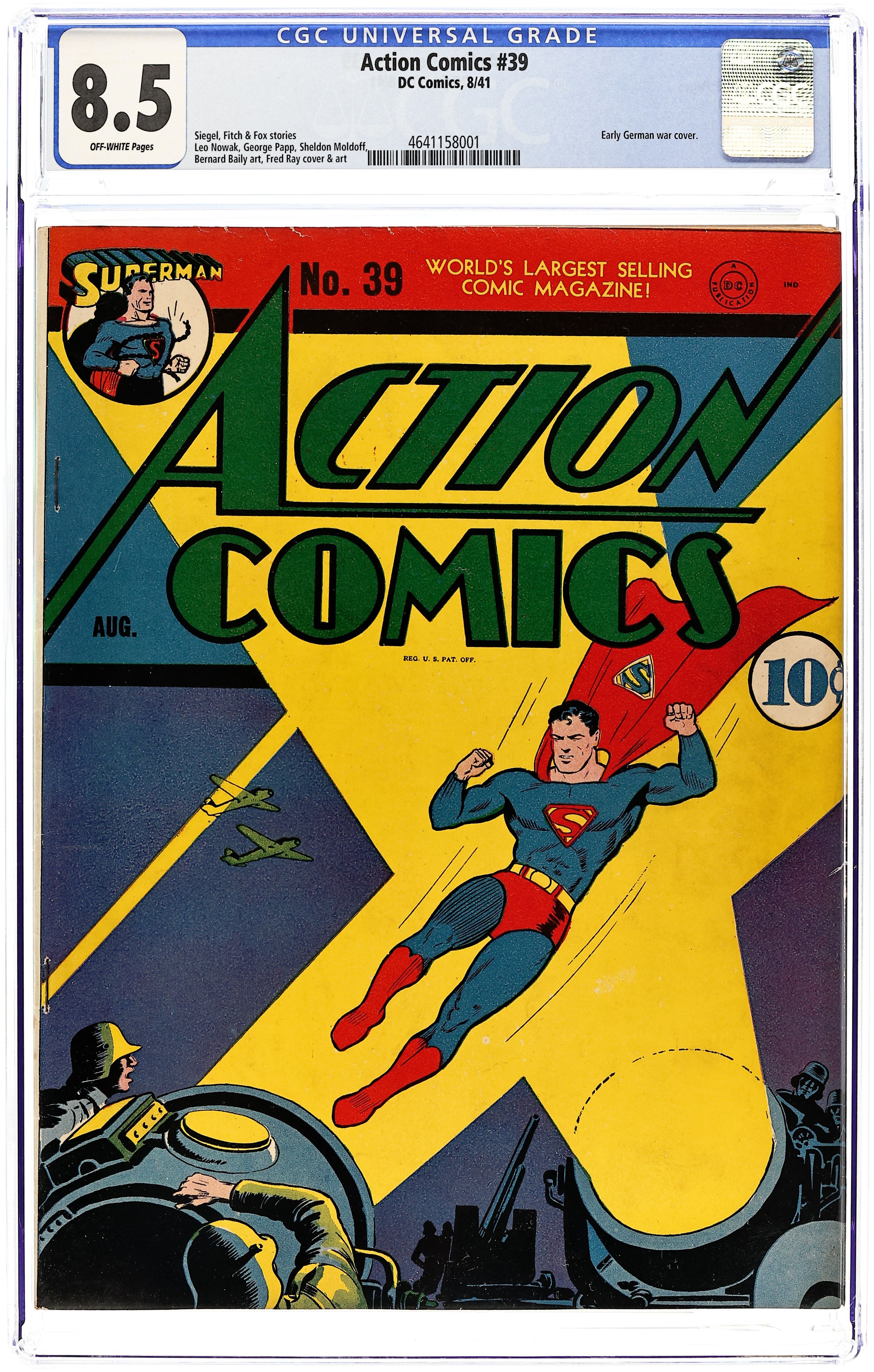 Cover art by Fred Ray. Superman story, script by Jerry Siegel, pencils by Leo Nowak (signed as Joe Shuster), inks by Shuster Shop. Pep Morgan story, art by George Papp. Black Pirate story, art by Sheldon Moldoff. Three Aces story, script by Gardner F. Fox, art by Chad Grothkopf. Mr. America story, script by Ken Fitch, art by Bernard Baily. Congo Bill story, art by Fred Ray. Zatara story, script by Gardner F. Fox, art by Joseph Sulman. 68 Pages, Full Color. $.10 Cover price $0.10.