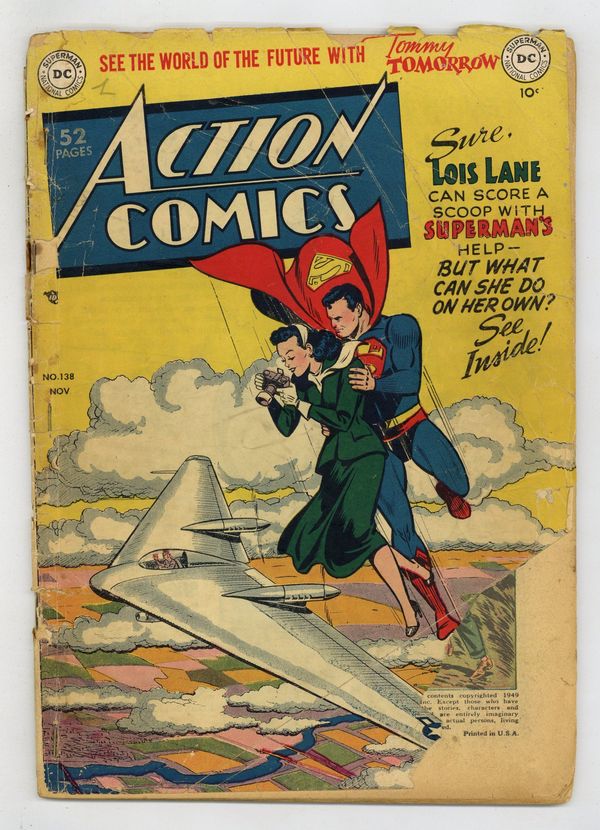 Cover art by Al Plastino. Superman Scoop Parade, script by Edmond Hamilton, pencils by Wayne Boring, inks by Stan Kaye. Captain Tootsie ad, art by C. C. Beck. The Crystal Doom starring Tommy Tomorrow, script by Otto Binder, pencils by Curt Swan, inks by John Fischetti. The Animal Actors starring Zatara, script by Joe Samachson, art by Joe Kubert. Congo Bill story, art by Ed Smalle. The Man Who Loved Horses starring Vigilante, script by Gardner Fox, art by Dan Barry. 52 Pages, Full Color. $.10 Cover price $0.10.