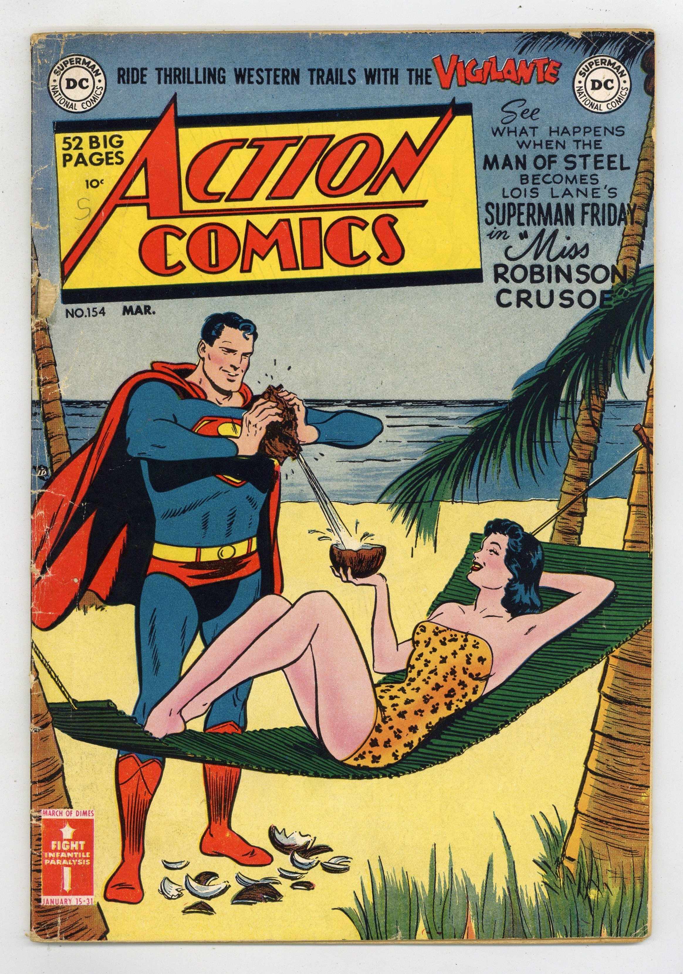 Cover art by Win Mortimer. Miss Robinson Crusoe starring Superman, art by Al Plastino. The Pest of the Planeteers starring Tommy Tomorrow, pencils by Curt Swan, inks by John Fischetti. Scores One for the Handicapped! starring Buzzy, script by Jack Schiff, art by Win Mortimer. The Octopus League starring Congo Bill, art by Ed Smalle. The Covered Wagon Cavalcade starring Vigilante, art by Bob Brown. 52 Pages, Full Color. $.10 Cover price $0.10.