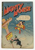Cover by Art Bartsch. Art by Connie Rasinski and others. The world's mightiest mouse defends Mouseville from danger - mostly cats - in the comic-book adventures of the Terrytoons animated superhero. Mighty Mouse must save Captain Sam's ship from the "devil in the deep," which turns out to be a giant octopus. Cats trick the students in a bird school into thinking that Mighty Mouse is going to give a lecture. Oil Can Harry straps Pearl Pureheart to the moving hands of a giant clock. Gandy and Sourpuss: Sourpuss Outsmarts Himself; The Bird School; Sourpuss Strikes a Sour Note; The Perils of Pearl Pureheart; The Challenge; Heckle and Jeckle; The Devil in the Deep; Dinky; Dimwit. 32 pages, Full Color. Cover price $0.10.