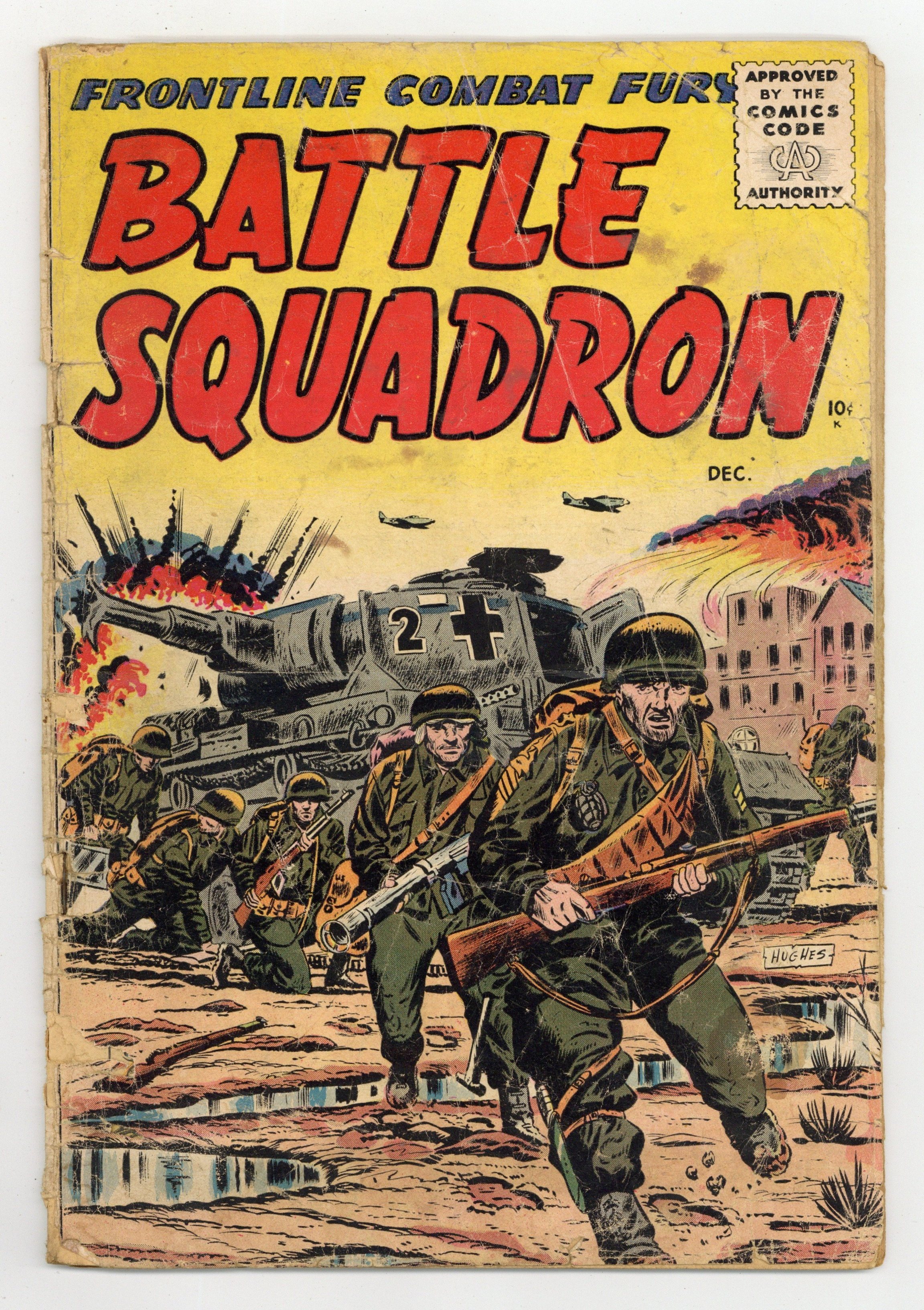 Stories and art by Eugene E. Hughes and others. Soldiers face life on the battlefield in one of the many 1950s war comics by publisher Stanley Morse. A Red Cross medic stays busy on the battlefield in Korea. Military engineers must rebuild a key bridge under fire during World War II. A US sergeant and captain must make difficult decisions involving their troops in combat. Corpsman! Oh, Coo-o-rrpsman!!; The U.S. Destroyer: Samarti; The Roughest and the Toughest!; A Reminder; Decision Is a Lonely Business! Final issue of the series. 32 pages, Full Color. Cover price $0.10.