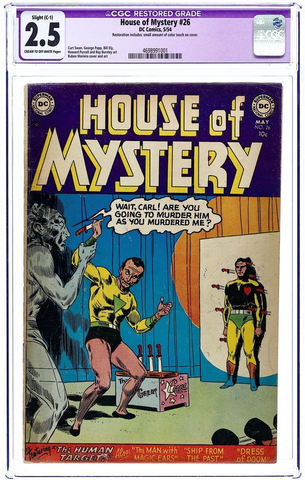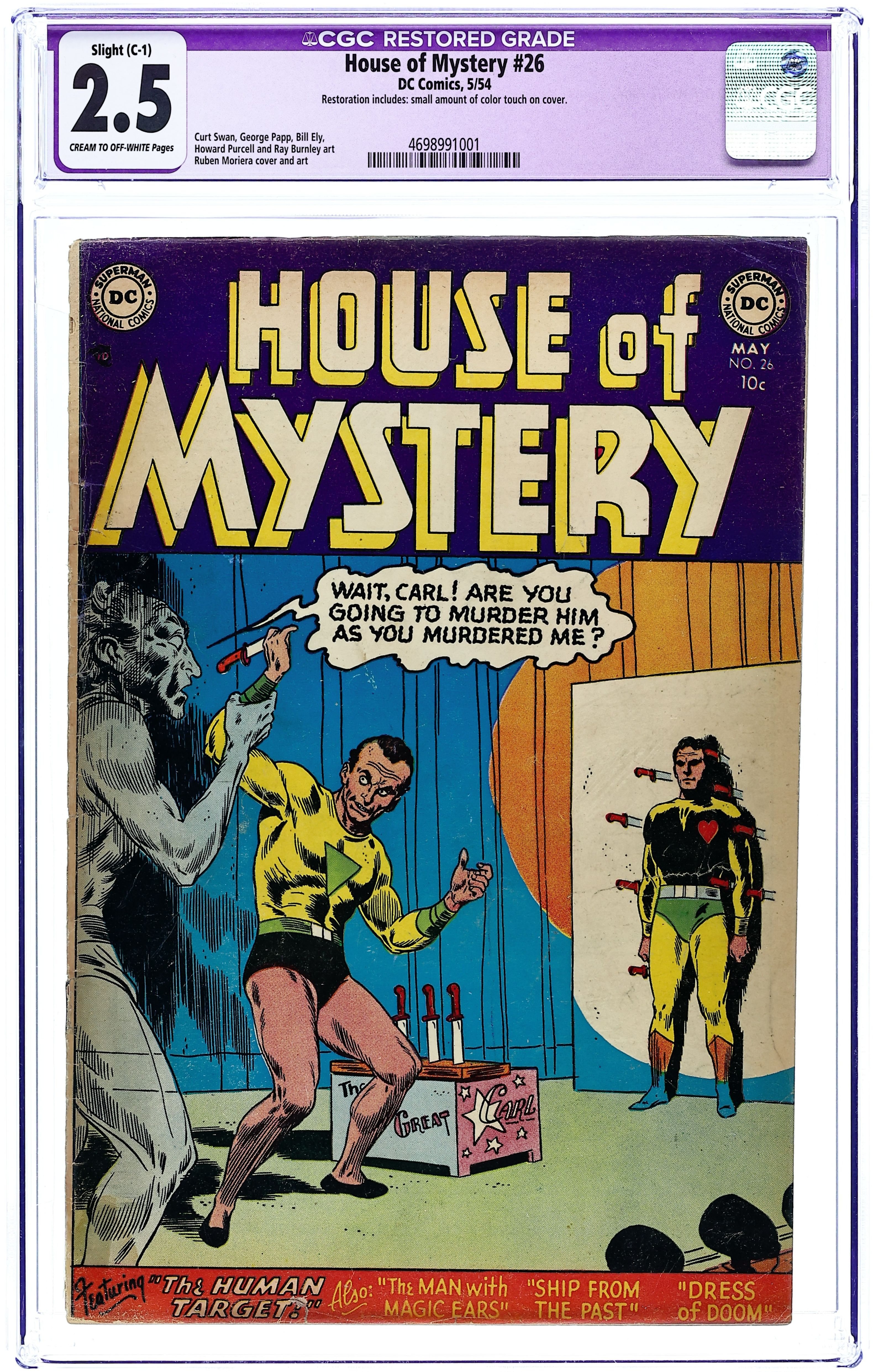Cover art by Ruben Moreira. "The Man With The Magic Ears," pencils by Curt Swan, inks by Ray Burnley; Pioneering engineer Alfred Jarvis builds a machine with which he can hear the sounds plants make; Their cries, their sobs, their dying sighs; He goes on a rampage to stop people from cutting flowers, but is suspected to be a madman. "Written in the Sands," art by George Papp. "The Ship From The Past," pencils by Howard Purcell, inks by Ray Burnley; A "spectral ship" pursues a modern freighter; Its all a ruse, though, for a wanted criminal uses this set-up to flee the country. Untitled Can You Explain It? story, art by Bill Ely. "The Dress of Doom," art by George Papp; The bride is wearing a supposedly cursed wedding dress. "The Human Target," art by Ruben Moreira; A knife-throwers unrequited love for his assistent ends in jealousy and death. 36 Pages, Full Color. Cover price $0.10.