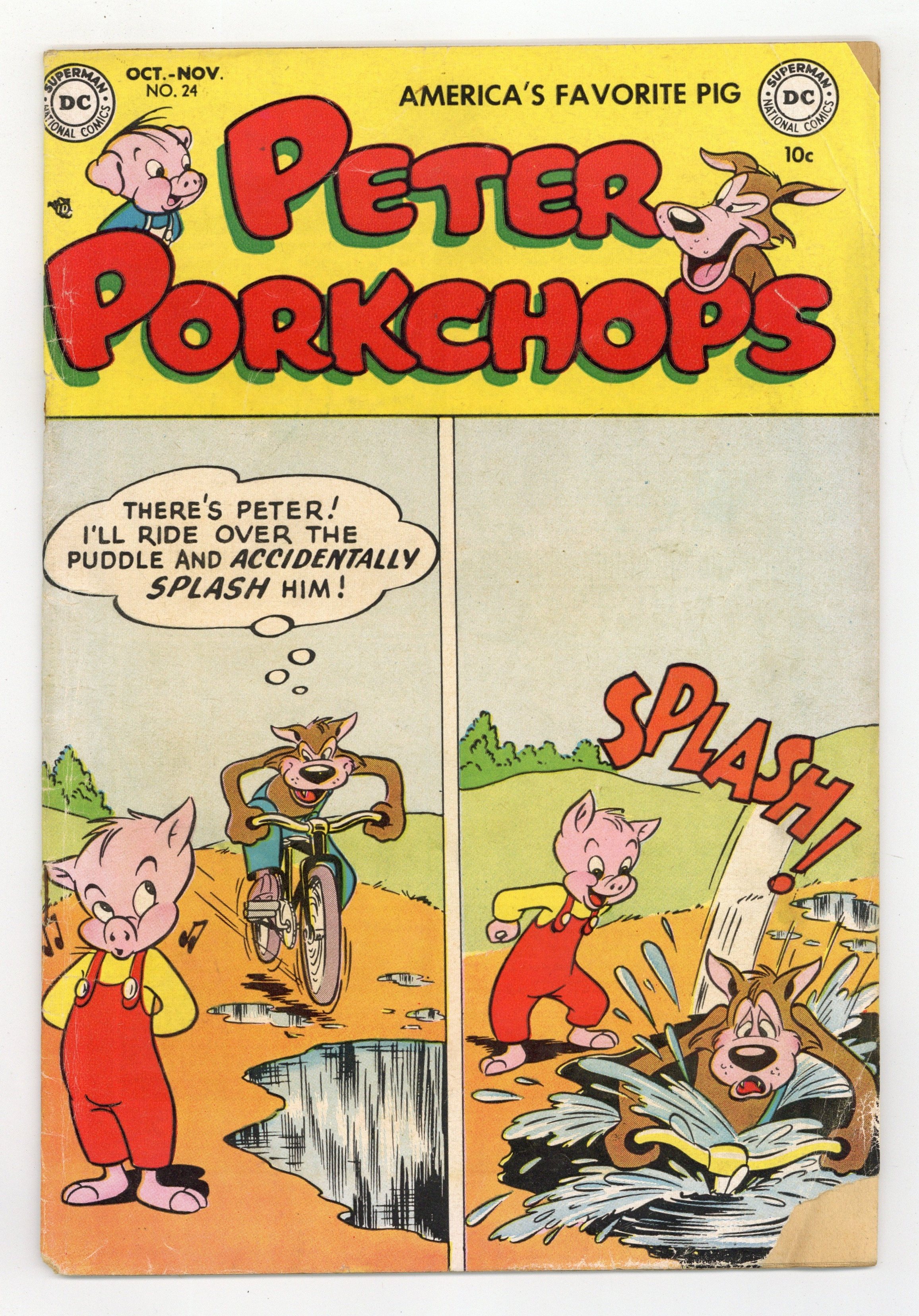 Cover art by Otto Feuer. A Fishy Story!, art by Otto Feuer; Peter and Wolfie compete for a $100 prize for catching the biggest fish. Rome, Sweet Rome!, art by Otto Feuer; A blow to the head makes Wolfie dream that he has traveled back in time to ancient Rome, where Peter is the Emperor. Ad for Peter Panda #1, art by Rube Grossman. Untitled Goofy Goose story, art by Rube Grossman; Pierre causes a ruckus at the museum because his painting has been hung upside down. Let's Eat, art by Otto Feuer; Wolfie tries to trick Peter into feeding him dinner. The Mouse Who Made Plans text story. Untitled story, art by Otto Feuer; Wolfie enrolls in Willy Weasel's school for crooks, but Peter still manages to outsmart him. 36 pgs. $0.10. Cover price $0.10.
