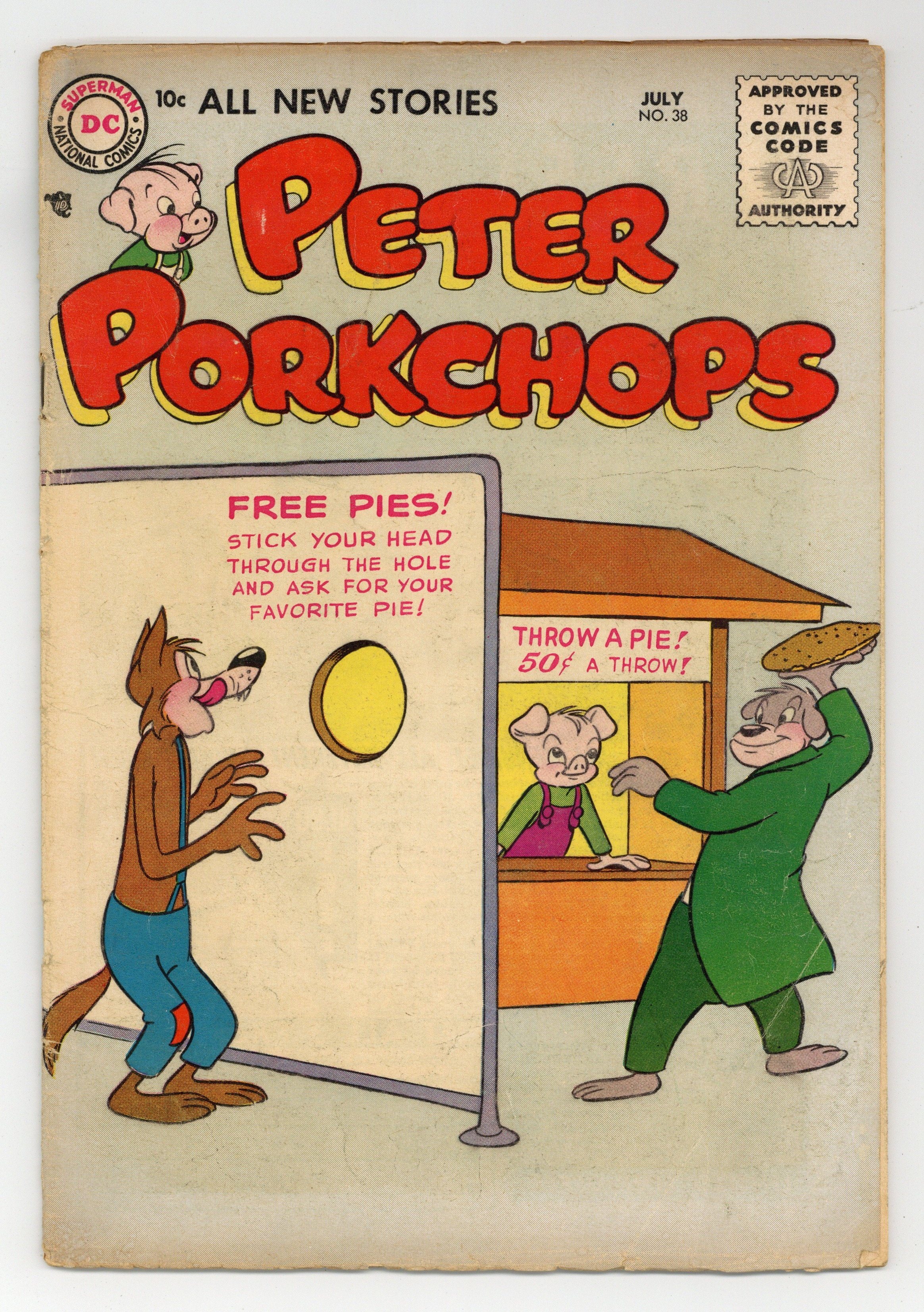 $16.50Cover art by Otto Feuer. Sailor Beware!, art by Otto Feuer; Wolfie wants to go for a cruise on Peter's new yacht even though he hasn't been invited. Ad for Nutsy Squirrel #66 and Peter Porkchops #38, art by Rube Grossman and Otto Feuer. Untitled Doodles Duck story, script and art by Sheldon Mayer; Doodles tries to teach his nephew the best way to handle a bully but he eventually learns that there's more to the situation. Circus Daze!, art by Otto Feuer; Wolfie is supposed to dress up as a lion for a charity circus but decides that it would be more fun to bring a real lion, until things get out of hand. Ad for The Adventures of Superman television series. The Good Sport text story. Untitled Bo Bunny story, script and art by Sheldon Mayer; The professors argue over just how lazy Bo and Skinny really are. Mad Trap, art by Otto Feuer; When Peter tells Wolfie about a treasure map he's found, Wolfie tries to get to the treasure first. . 36 pgs. $0.10. Cover price $0.10.