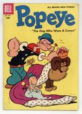 Published Dec 1956 by Dell/Gold Key/Whitman.$16.00Cover art by Bud Sagendorf. Scripts and art by Bud Sagendorf. Untitled one-page story; Swee'Pea wants to take his dog to dinner at Olive's house. The Dog Who Wore a Crown!, or, Going to the Dogs!; Popeye and his friends visit King Blozo and discover that he has gone on vacation and made Birdseed, a dog, the new king; After Popeye proves that this isn't working out well, Blozo retakes his throne and Birdseed comes home with Swee'Pea. Bottle Fish! text story. Wotasnozzle invents a teleportation machine which allows him to catch more fish than Sappo. "Hurray for Wotasnozzle! Thank you! Thank you!"; Wotasnozzle invents a teleportation machine which allows him to catch more fish than Sappo. Untitled one-page story; Popeye wants the dog to sleep outside. Based on the classic cartoon and comic strip character. 36 pages, full color. Cover price $0.10.
