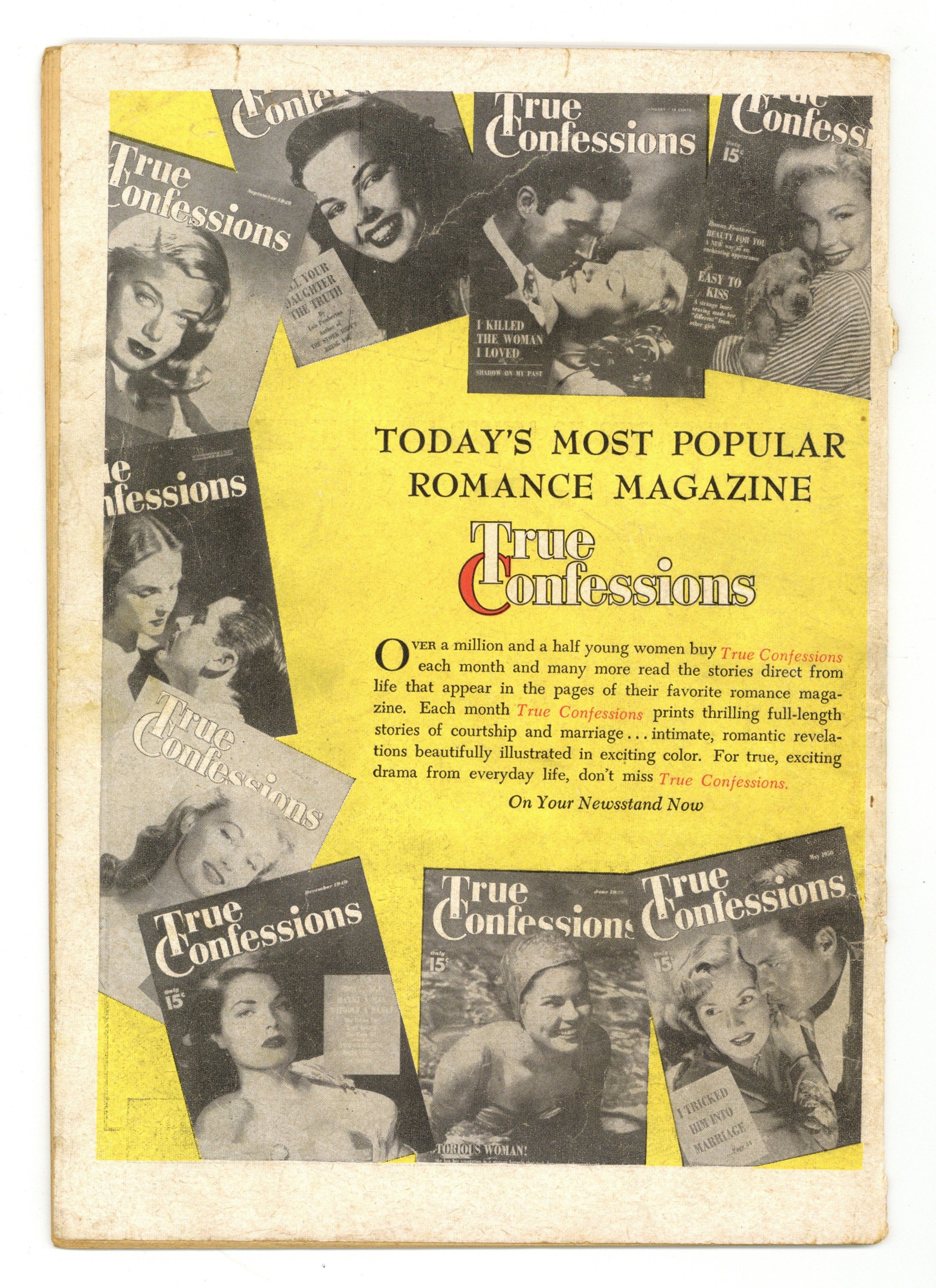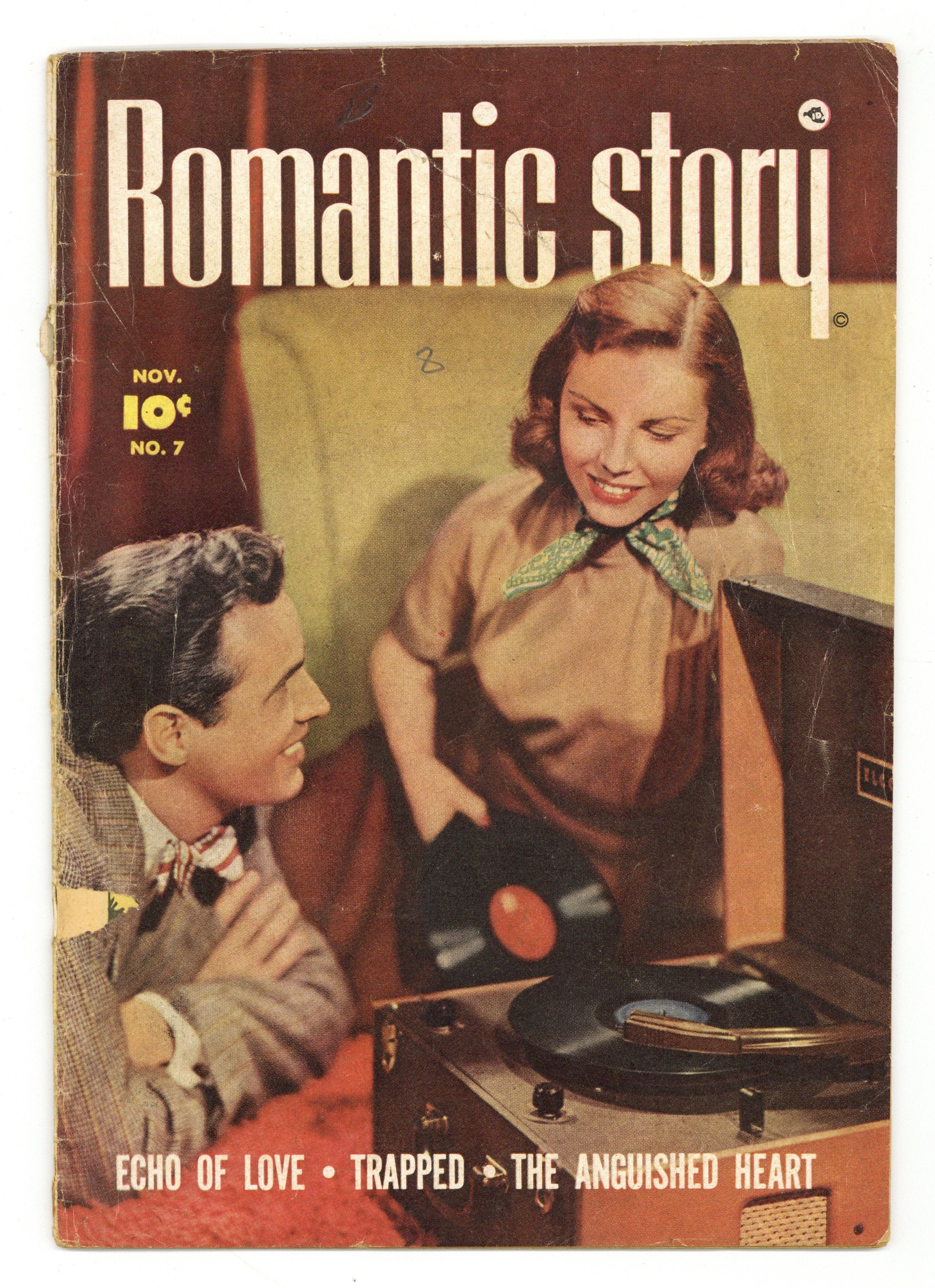 Tales of secret love, heartbreak, unrequited love, and reconciliation. Reporter Grace meets handsome Ray while covering the homeless problem, but after she falls for him, she doesn't know how to tell him he's the star of her stories. Scheming Sylvia sets up Amy and Steve to clear a path to Amy's job, but she didn't expect to fall for Steve herself. Jean pretends to be someone she isn't to win a man, but when he finds out the truth, she risks losing everything. Echo of Love; The Anguished Heart; Leading Lady; Trapped. 32 pages, Full Color. Cover price $0.10.