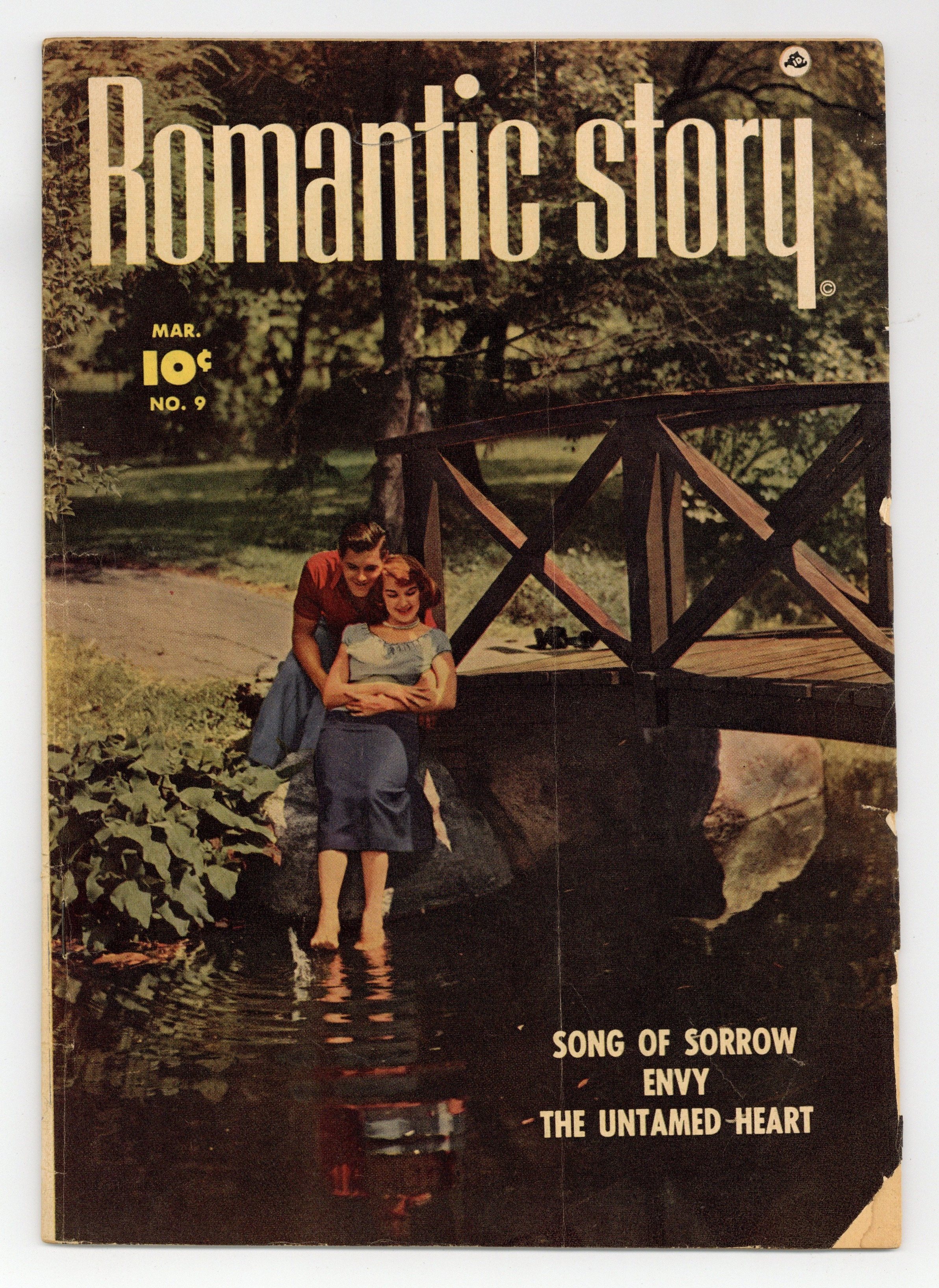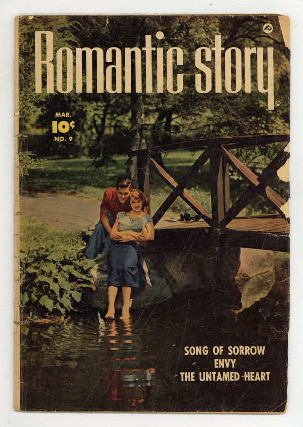 Published Mar 1951 by Charlton Comics Group.$95.00Photo cover. "Song of Sorrow"; Upset when her ex-boyfriend Herb marries another, Anise wanders into the woods and stumbles upon a cabin where Les lies ill; She helps nurse him back to health; He says he became a hermit after the war. "The Untamed Heart"; Amy rescues drifter Gary from a band of outlaws, and takes him to her fathers ranch to recover; They fall in love, but Gary cant suppress his wild ways and leaves. "Say It with Flowers" text story by June Allen. "Envy"; After being dumped by boyfriend David, waitress Joyce starts dating her boss Ken; When her old friend Mary arrives in town, Joyce is glad to see her until Mary and Ken fall in love; Joyce discovers restaurant cashier Irene is stealing money but doesnt tell Ken; Ken is fired by the head office because of the missing cash. 36 pgs., full color. Cover price $0.10.