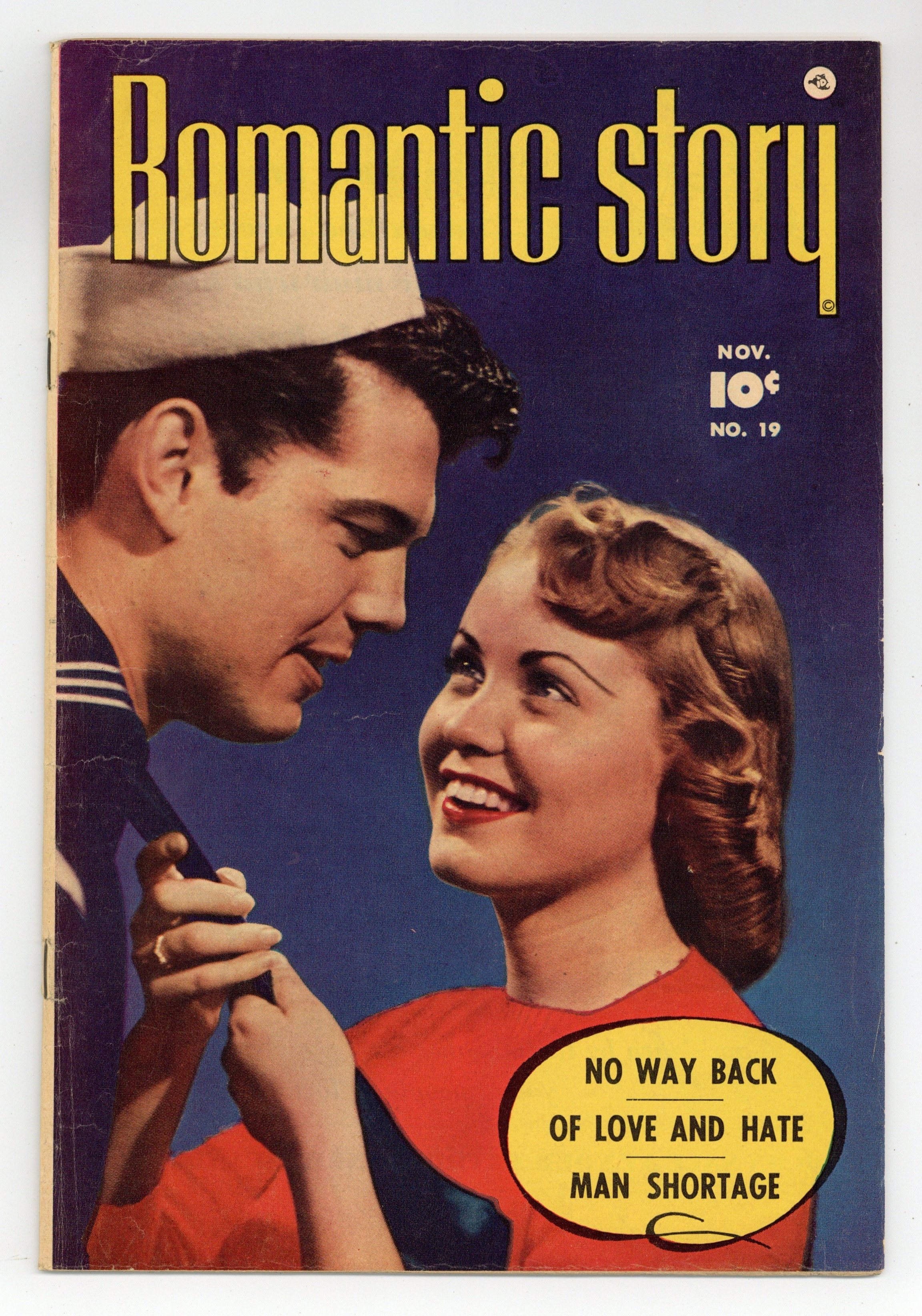 Tales of secret love, heartbreak, unrequited love, and reconciliation. Susan decides to romance Elton as a way of furthering the feud between their two families, but she didn't expect to fall for Elton in the process. Nora schemes to get ahead at work, but boyfriend Dick is turned off by her lack of ethics. Obsessing over the lack of available men in her town, Ina agrees to marry Walt - and then she meets handsome sailor Bill. Of Love and Hate; No Way Back; The Celebrity Man-Shortage. 32 pages, Full Color. Cover price $0.10.