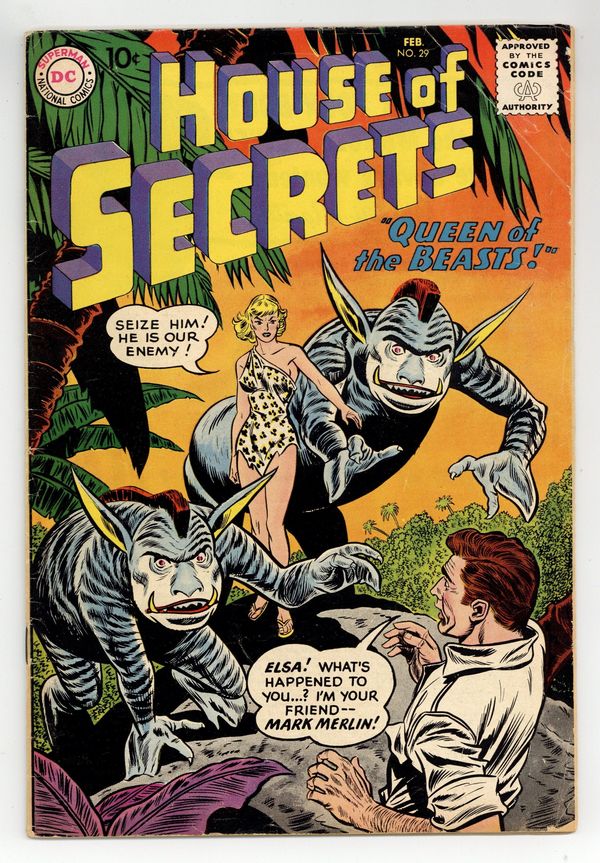 Cover pencils by Dick Dillin, inks by Sheldon Moldoff. "The Curse of the Forbidden Flora," art by Bill Ely; Adventurers are sent to collect specimens of flora grown by Tibetan wild men, but the specimens are protected by high priests who have placed a curse on anyone who picks their flowers. Ad for Tales of the Unexpected #46, My Greatest Adventure #40, and House of Mystery #95. 2/3 John C. Adams filler page, script by Julius Schwartz, art by Mort Drucker. "It's Fun to Help Others!" public service announcement starring Superboy, script by Jack Schiff, pencils by Curt Swan, inks by George Klein. "The Mystery of the Man-Made Monsters," art by Nick Cardy; A scientist has been experimenting on animals using radioactive isotopes, which cause a sheep to grow gold wool, spiders to spin webs made of silver, and caterpillars to weave indestructible cocoons; And that's before they increased in size. Ad for World's Finest Comics #107. One-page Moolah the Mystic story by Henry Boltinoff. "The Queen of the Beasts," pencils by Joe Kubert, inks by Mort Meskin; While investigating reports of strange creatures, Mark and Elsa discover a crack in a mountainside that leads to a hidden valley; In the valley they find creatures that appear to have come from underground. Elsa overpowered by fumes from the plant life, finds she can communicate with the creatures, and determines that together they can take over the earth. 36 Pages, Full Color. Cover price $0.10.