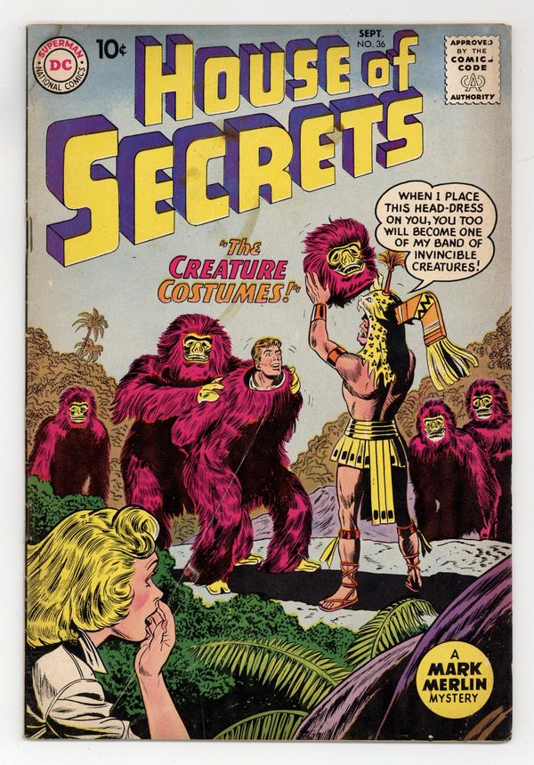 Cover pencils by Dick Dillin, inks by Sheldon Moldoff. "The Creature Costumes," pencils by Mort Meskin, inks by George Roussos; Mark Merlin and Elsa travel to the Peruvian jungle to help defeat a witch doctor who controls a group of men in monster costumes; Merlin is forced to don one of the costumes and falls under the spell of the witch doctor himself. Cave Carson ad. "The Secret of the Lost Sea," art by Lee Elias; Two adventurers are hired by a rich man to help him find a hidden island. "The Haunted Caverns" text story. Half-page Dr. Floogle story by Henry Boltinoff. "Bike Safety = Bike Fun!" public service announcement, script by Jack Schiff, art by Bernard Baily; quiz based on the rules of the Bicycle Institute of America. "The Deadly Duplicate," art by Bill Ely; Robert Steele buys a robot double of himself so that he can go on vacation and leave the robot to manage his business, but the robot's inventor plots to take over Steele's life completely. 36 Pages, Full Color. Cover price $0.10.