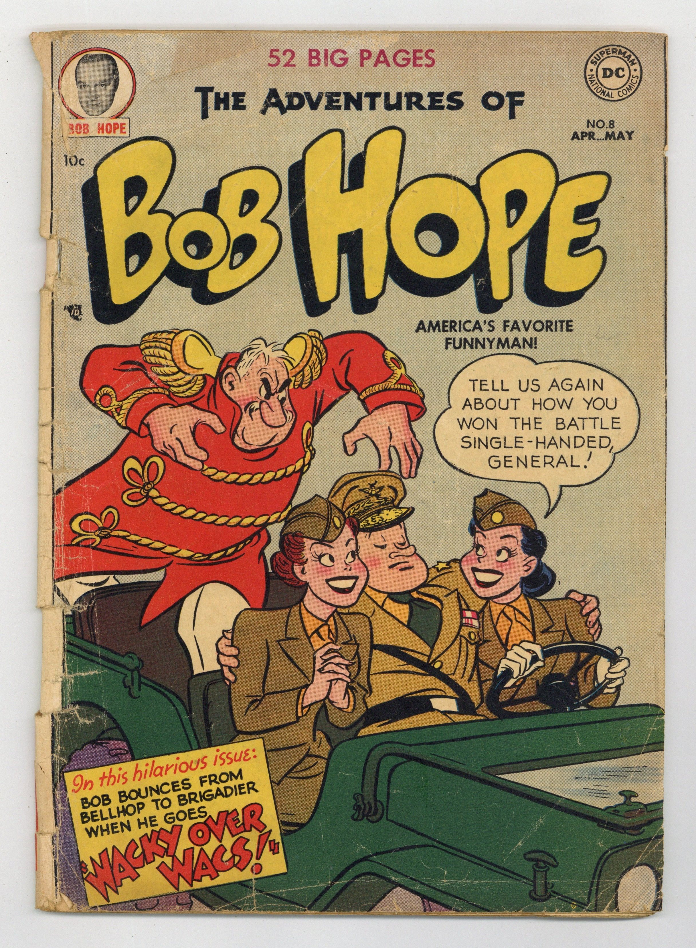 Cover by Owen Fitzgerald. Written by Cal Howard, Henry Boltinoff and unknown. Art by Owen Fitzgerald, Henry Boltinoff and Bob Oksner. Bob Hope, America's favorite funnyman, bounces from bellhop to brigadier when he goes..."Wacky Over WACs!" by Cal Howard and Owen Fitzgerald. Plus: Two Honey in Hollywood strips by Henry Boltinoff; Peg 1-pager by Boltinoff; Miss Beverly Hills of Hollywood back-up story, with art by Bob Oksner; Jerry the Jitterbug half-pager by Boltinoff; and A Bit of Disc and Data article. 48 pages, full color. Cover price $0.10.