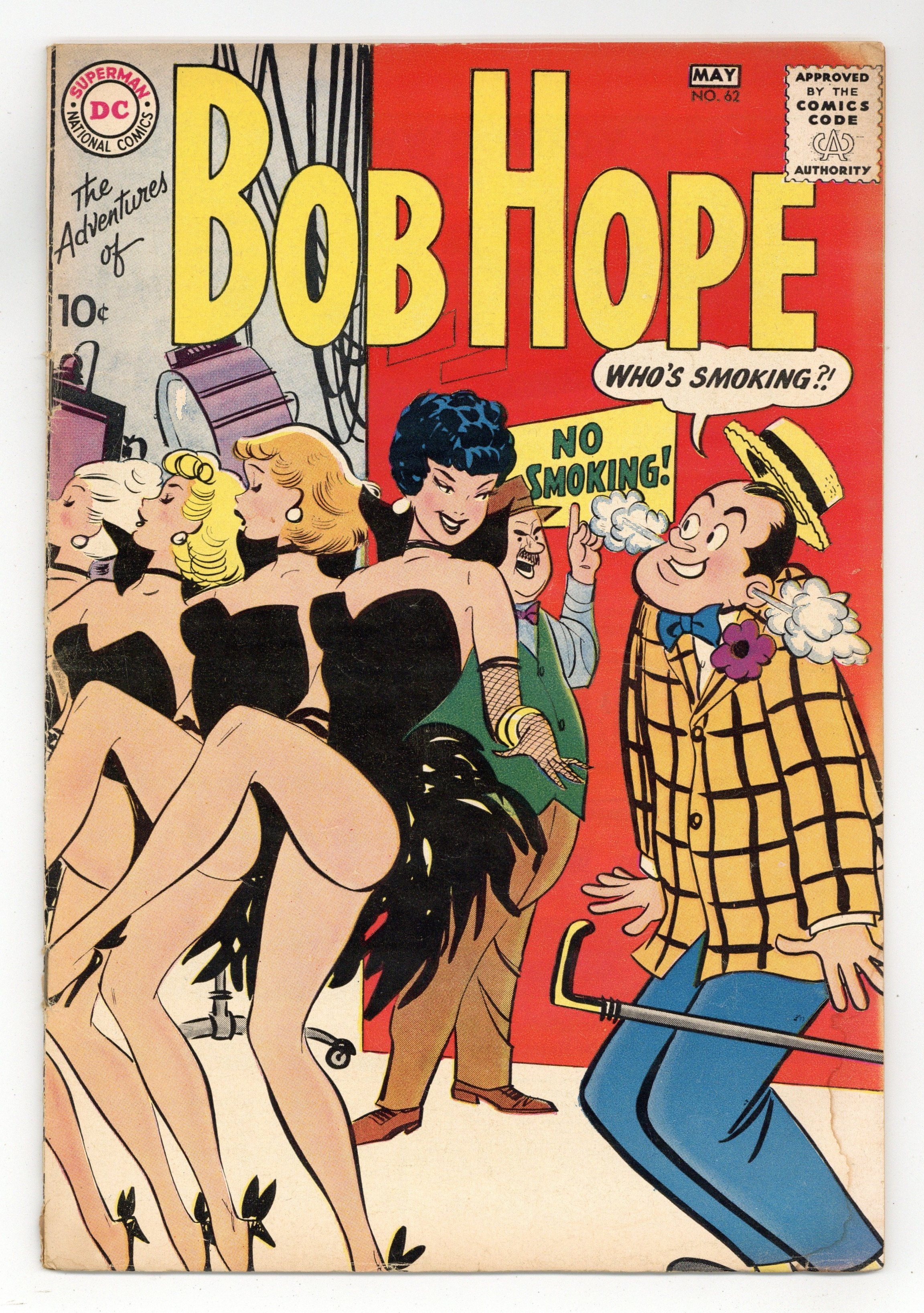 $42.00Cover by Owen Fitzgerald. Written by Cal Howard, Mort Drucker and unknown. Art by Owen Fitzgerald, Mort Drucker and unknown. Bob Hope, America's favorite funnyman, helps put on a play in an untitled 3-part story by Cal Howard and Owen Fitzgerald. Plus: Teen-Age Life in Alaska gag strips by Mort Drucker; Changing Channels on TV gag strips; and Inside Hollywood article. 32 pages, full color. Cover price $0.10.