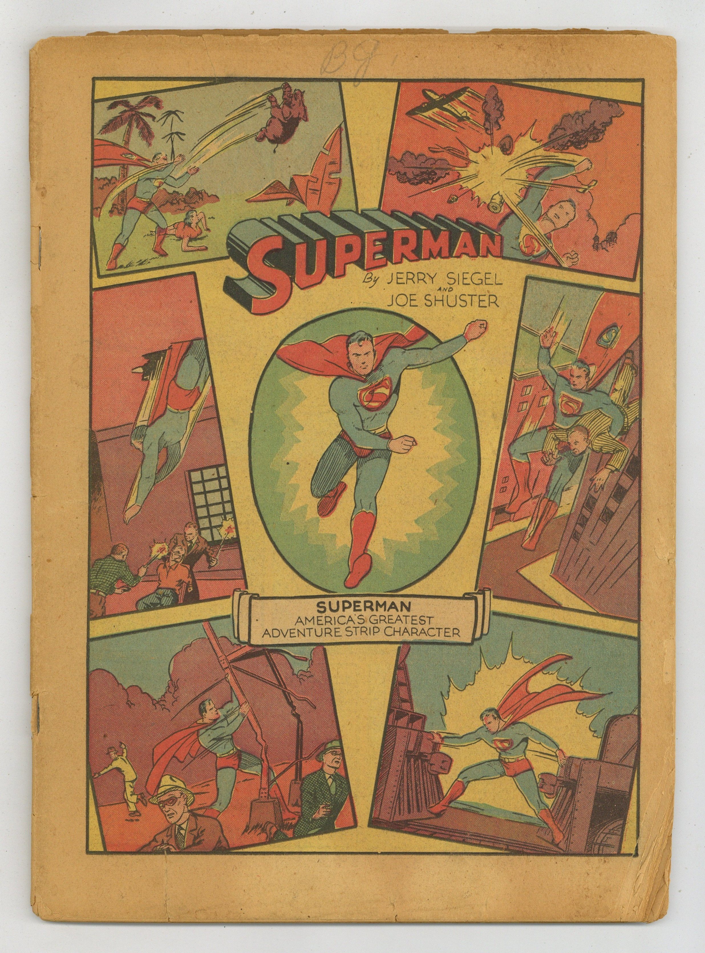 Tags: Superman$225.00- COVERLESS. INCOMPLETE. Centerfold missing, large piece from page 10 of the "Mystery in Swasey Swamp" story torn out, affects readability. First wrap detached and almost completely split. Brittle.