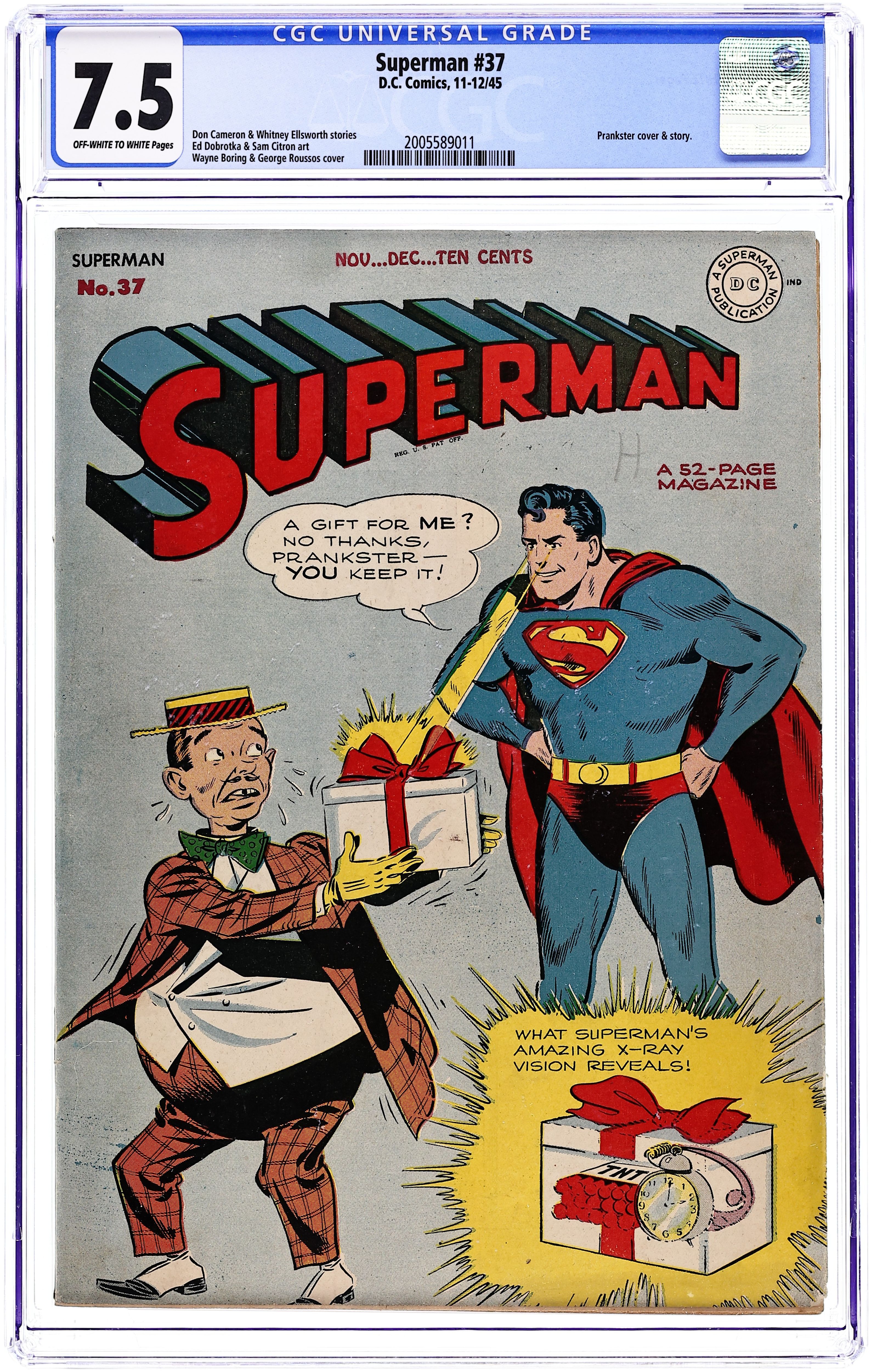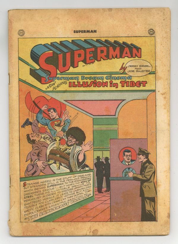 Cover pencils by Wayne Boring, inks by George Roussos. The Dangerous Dream starring Superman, Johnny Fray, The Velvet Gang, Perry White, and Lois Lane, pencils by Ed Dobrotka, inks by George Roussos. Pranks For Profit starring Superman, the Prankster, and Lois Lane, script by Don Cameron, pencils by Ed Dobrotka. Chief Hot Foot humor page by Henry Boltinoff. Six Gun Justice text story by Tom Neill. Lois Lane story with Clark Kent, Emery King, and Big Larkin, script by Whitney Ellsworth, pencils by Sam Citron. Daffy and Doodle humor page by Lit-Win. The Rubbish Robbers starring Superman, pencils by Ed Dobrotka. 52 Pages, Full Color. Cover price $0.10.