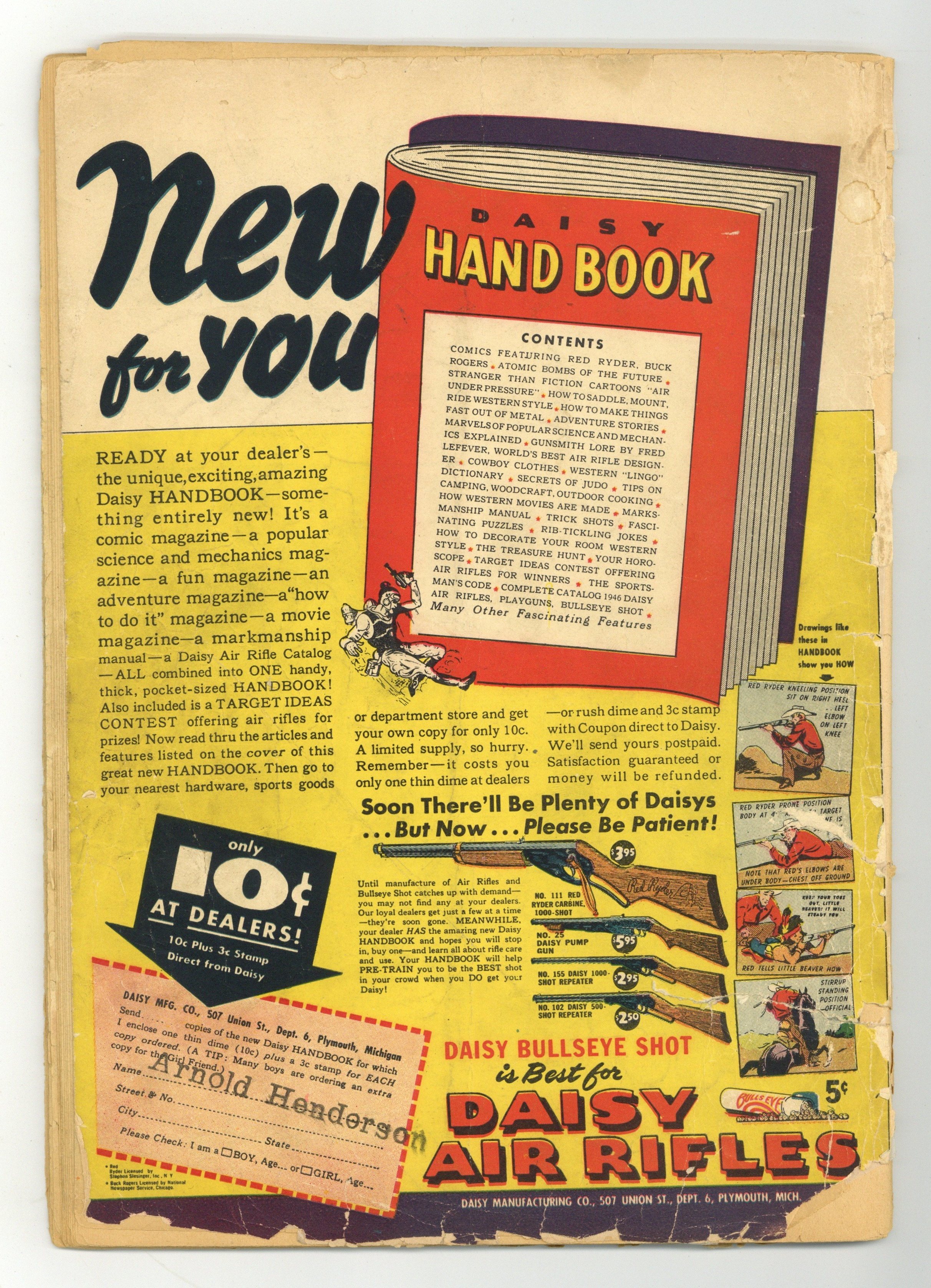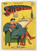 Cover pencils by Wayne Boring, inks by George Roussos. Too Many Pranksters starring Superman and The Prankster, script by Don Cameron, pencils by Sam Citron. Clark Kent's Bodyguard starring Superman, Pat Malarkey, Lois Lane, and Perry White, script by Alvin Schwartz, pencils by Sam Citron, inks by Stan Kaye. Chief Hot Foot humor page by Henry Boltinoff. Little Barney humor page by Phil Berube. Gun Duel text story by Stan Carter. A Modern Alice in Wonderland starring Superman, Alice Neal, and Lois Lane, script by Jerry Siegel, pencils by Sam Citron. Full-page full-color interior ad for Kellogs Pep comic pins (18 listed) and the Superman radio show. George Case baseball Wheaties full-page color ad. 52 Pages, Full Color. Cover price $0.10.