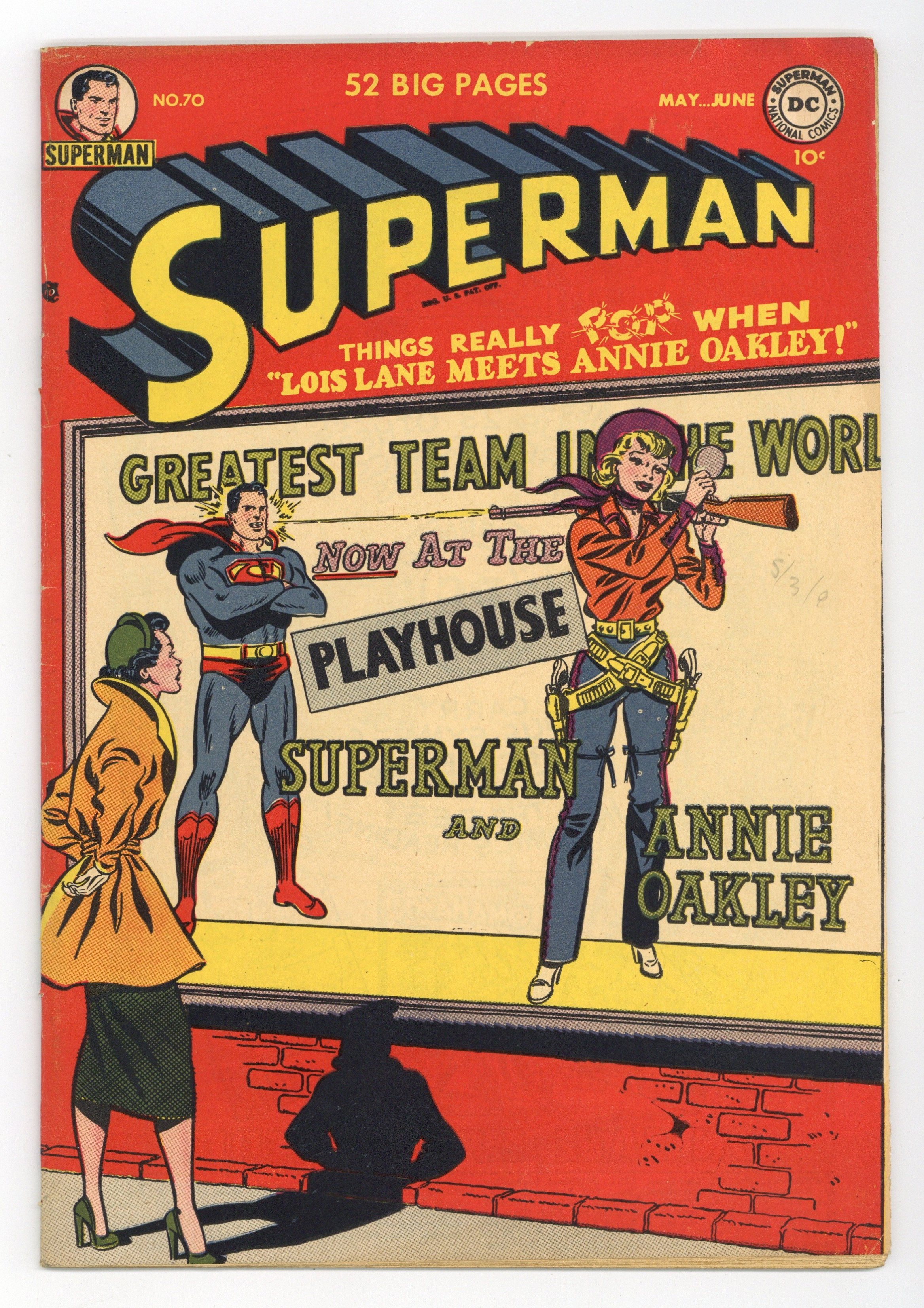 Cover pencils by Wayne Boring, inks by Stan Kaye. Lois Lane Meets Annie Oakley starring Superman and Annie Nichols (aka Annie Oakley), script by Alvin Schwartz, pencils by Wayne Boring, inks by Stan Kaye. The Life of Superman starring Charles Lamont and Angles Aldin, script by Edmond Hamilton, pencils by Wayne Boring, inks by Stan Kaye. Jerry the Jitterbug humor two-pager by Henry Boltinoff. The 'Copter Comes of Age text story. The Pied Piper Prankster starring Superman and The Prankster, script by Edmond Hamilton, pencils by Wayne Boring, inks by Stan Kaye. 52 Pages, Full Color. Cover price $0.10.