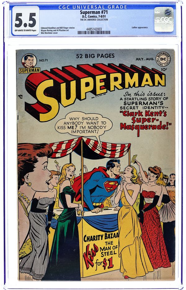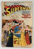 Cover art by Win Mortimer. Clark Kent's Super-Masquerade starring R24, script by Bill Finger, pencils by Wayne Boring, inks by Stan Kaye; Superman gains temporary amnesia. The Anti-Superman Club, script by Edmond Hamilton; Superman builds a Superwoman robot. Jerry Jitterbug humor two-pager by Henry Boltinoff. Minus Three Ninety text story. The Man Who Stole the Oceans starring Superman and Lex Luthor, script by Edmond Hamilton, pencils by Wayne Boring, inks by Stan Kaye. (In #48 he was The Man Who Stole the Sun! This guy thinks BIG!) Full-page, full-color Schwinn bicycle interior ad. 52 Pages, Full Color. Cover price $0.10.
