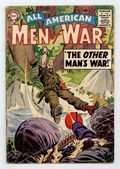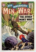 $50.00"The Other Man's War" (art by Russ Heath), "Story of a Boot" (art by Joe Kubert), and "A Fistful of War." Edited by Whitney Ellsworth. Cover by Joe Kubert. Stories by Robert Kanigher, Russ Heath, Bob Haney, Joe Kubert, Morris Waldinger, Tom Nicolisi, Bill Finger, Ross Andru, and Mike Esposito. Adventure tales of war and the military, including some humor—go into combat with All American Men of War! 36 Pages, Full Color. Cover price $0.10.