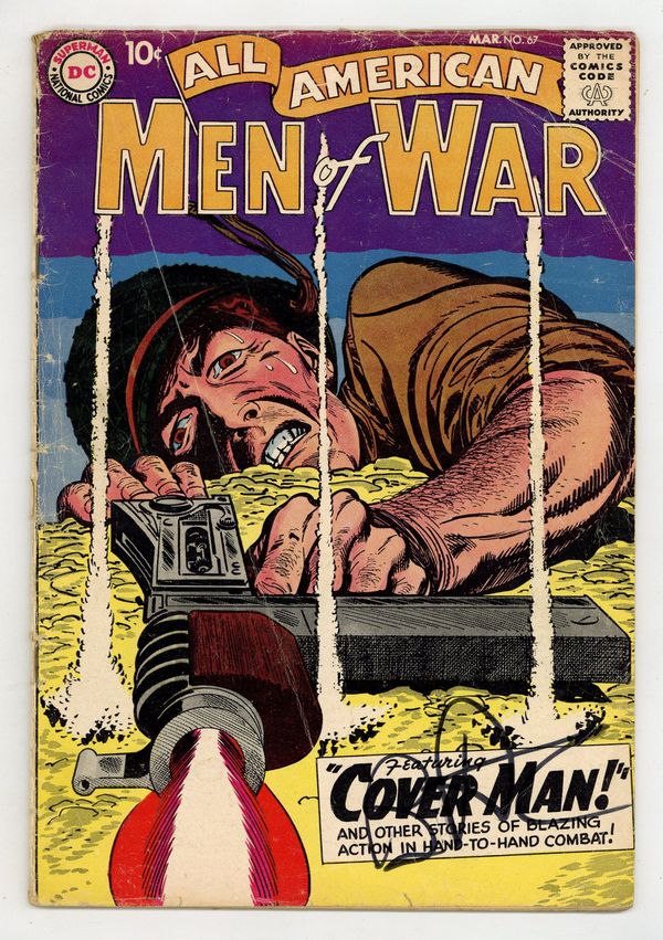 Edited by Whitney Ellsworth and Robert Kanigher. Cover by Jerry Grandenetti. 1st app. of Gunner & Sarge. Stories by Bob Haney, Jerry Grandenetti, Bob Haney, Russ Heath, Morris Waldinger, Tom Nicolisi, Robert Kanigher, Ross Andru, and Mike Esposito. Adventure tales of war and the military, including some humor—go into combat with All American Men of War! 36 Pages, Full Color. Cover price $0.10.