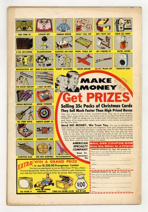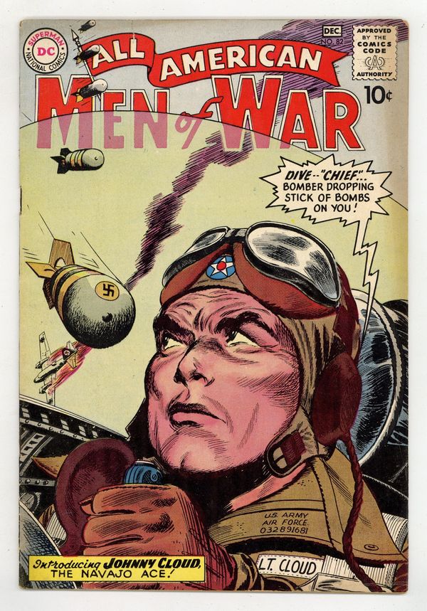 Edited by Robert Kanigher. Cover by Irv Novick. Stories by Robert Kanigher, Irv Novick, Morris Waldinger, Tom Nicolisi, Bob Haney, and Russ Heath. Adventure tales of war and the military, including some humor—go into combat with All American Men of War! 36 Pages, Full Color. Cover price $0.10.