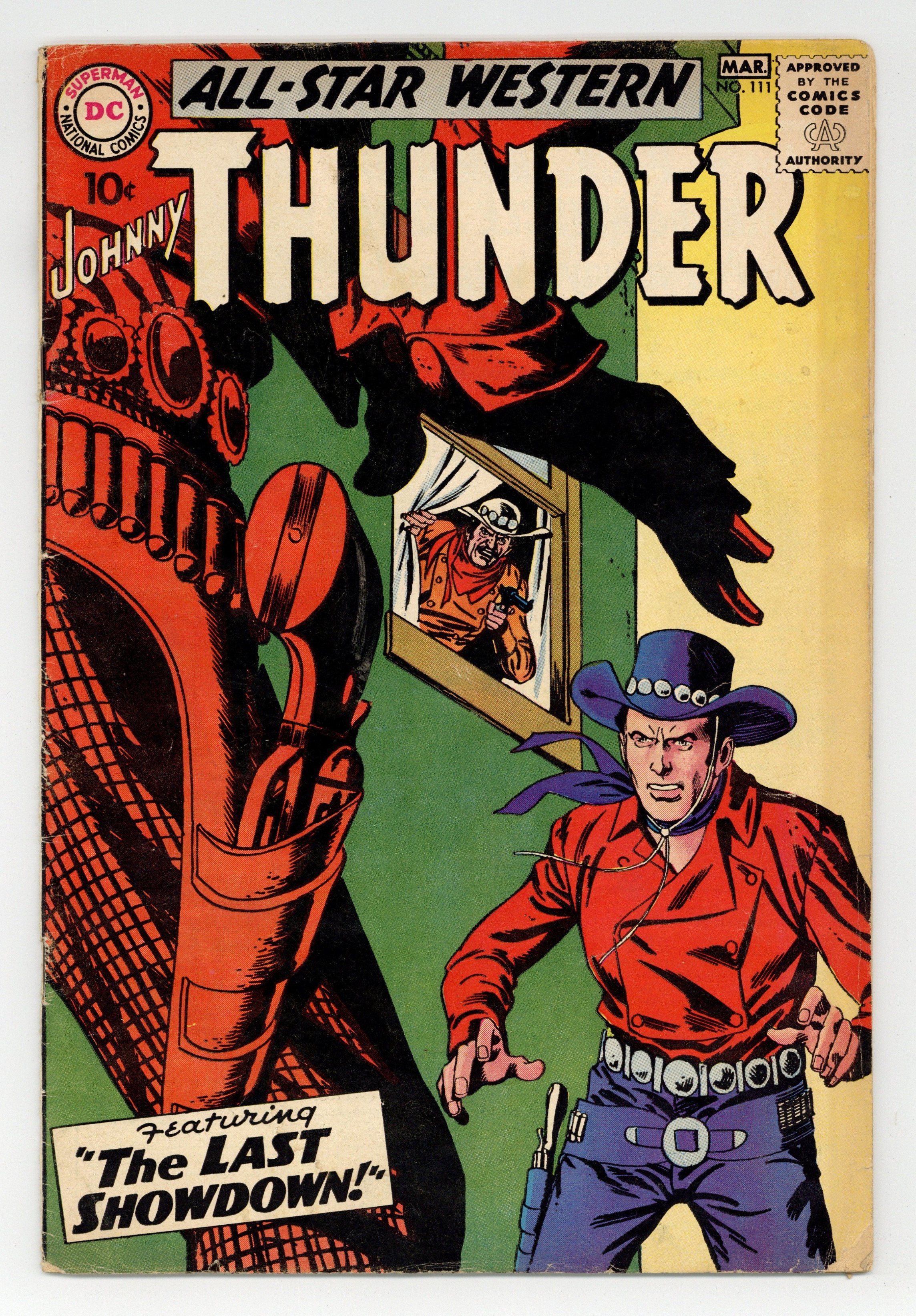 Edited by Julius Schwartz. Cover by Gil Kane. Stories by Robert Kanigher, Gil Kane, Joe Giella, John Broome, Howard Sherman, Gardner Fox, Carmine Infantino, and Bernard Sachs. Tales of the Old West starring such characters as the Trigger Twins, Foley of the Fighting 5th, and Johnny Thunder. It's Fun to Help Others public service announcement with Superboy by Jack Schiff, art by Curt Swan and Stan Kaye. 36 pages, full color. $0.10. Cover price $0.10.