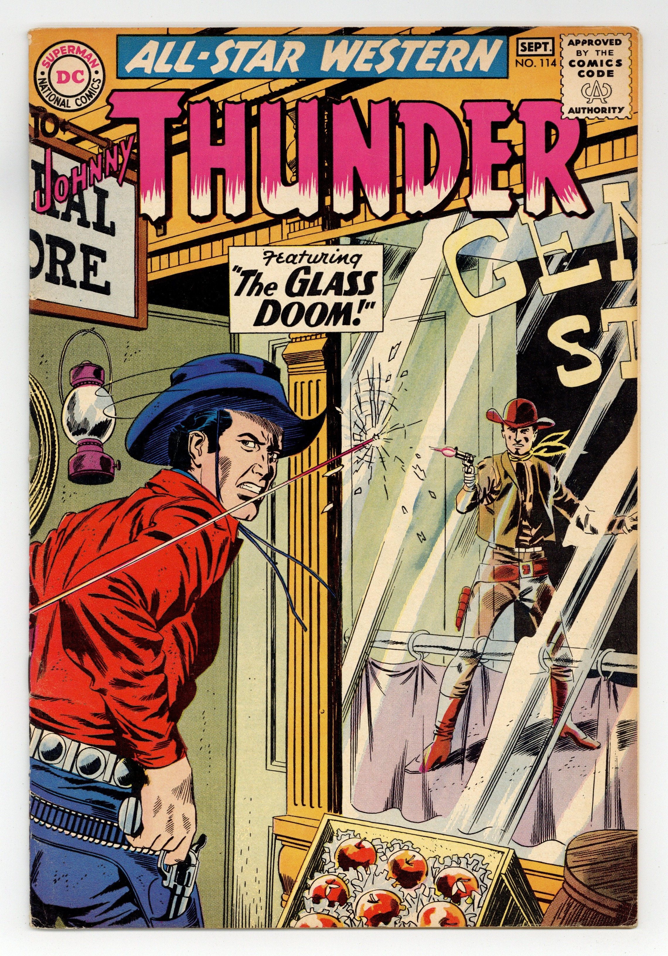 Edited by Julius Schwartz. Cover by Gil Kane and Joe Giella. Stories by Robert Kanigher, Gil Kane, Joe Giella, John Broome, Howard Sherman, Gardner Fox, Mike Sekowsky, and Bernard Sachs. Tales of the Old West starring such characters as the Trigger Twins, Foley of the Fighting 5th, and Johnny Thunder. 36 pages, full color. $0.10. Cover price $0.10.