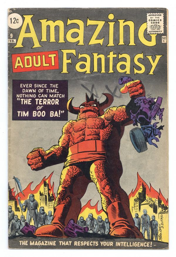 Cover art by Steve Ditko. The Terror of Tim Boo Ba; Alien warlord Tim Boo Ba is master of all he surveys but is wiped out in a torrential flood when an Earth boy drips water on the small scale model that is Tim Boo Ba's home planet. The Man Who Captured Death!; An old man builds a machine to freeze Death in his tracks since he is unwilling to go when he has so much more left to accomplish; With Death removed from the picture, the Earth becomes a shambles. I Come from the Black Void. The Spirit of Swami River; A swami crook steals money from gullible widows with his fake act until he promises to deliver money to a dead husband's spirit and the swami is surprised to find himself disappearing when the real spirit holds him to his word. The Genie Lives. All scripts by Stan Lee, all art by Steve Ditko. 36 pgs. $0.10. Cover price $0.12.