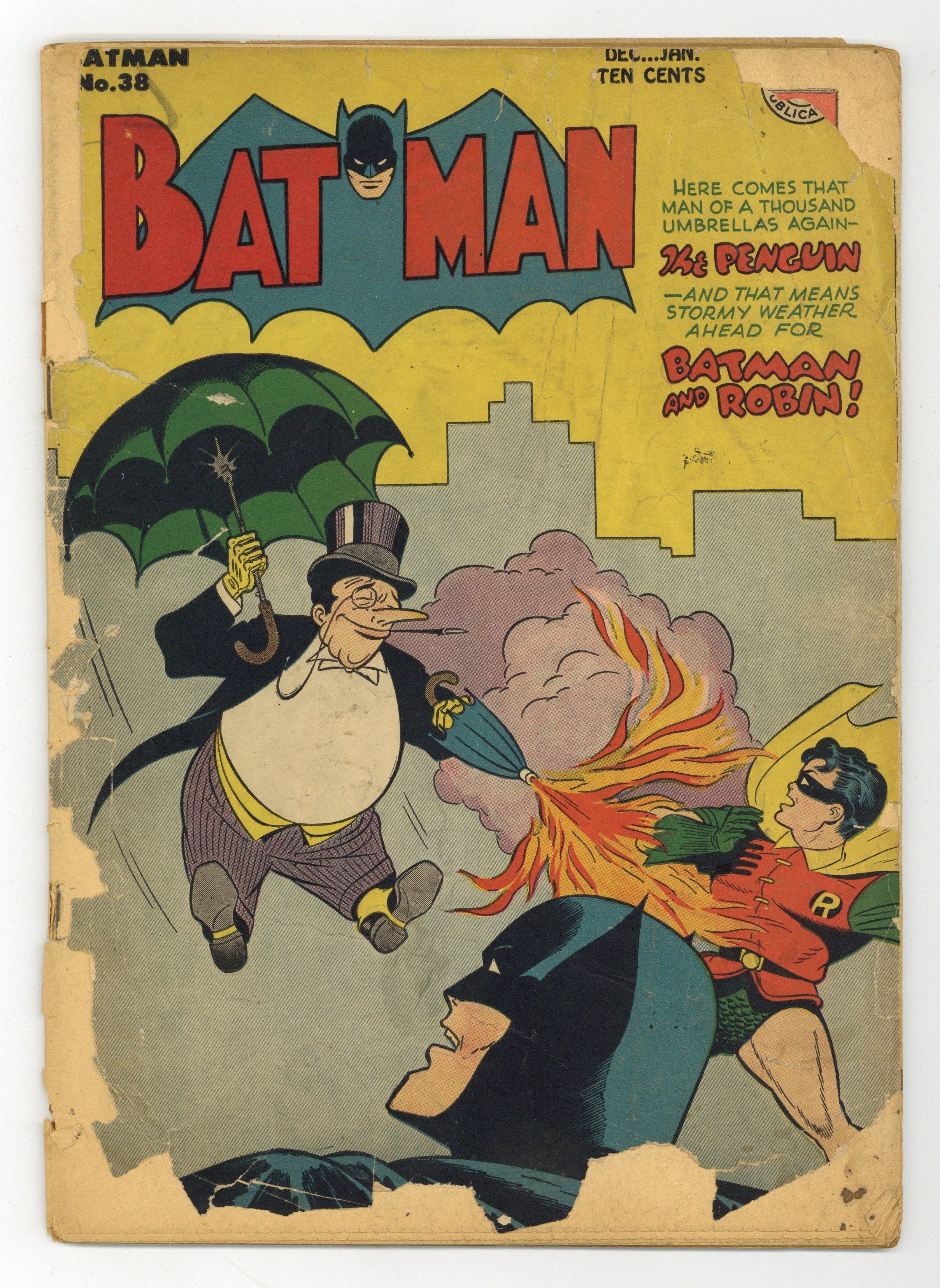 Cover by Dick Sprang. "Peril In Greece," script by Edmond Hamilton, art by Jim Mooney; Batman and Robin travel to ancient Greece to see the first Olympic Games; When a group of Persians try to disrupt the games to start a civil war, Batman and the athletes step in. "The Carbon Copy Crimes," script by Bill Finger, art by Jim Mooney; A series of murders are similar to those of Batman's first big case six years previous; People depicted in portraits are murdered. "Memo To a Murderer" text story by Blair Bolton. "The Penguin On Parole!", script by Don Cameron, art by Jim Mooney; The Penguin is paroled into the custody of Batman and Robin after the Penguin saves the life of a prison warden from a fire. 52 Pages, Full Color. Cover price $0.10.
