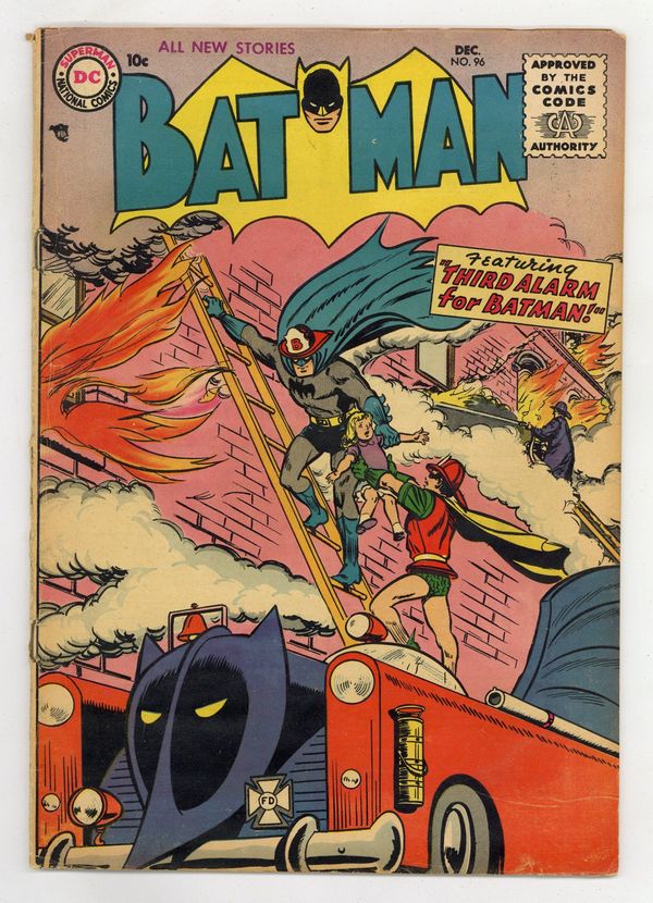 Cover by Win Mortimer. "His Majesty, King Batman," script by Bill Finger, pencils by Sheldon Moldoff (as Bob Kane), inks by Charles Paris; A visiting royal dignitary visiting Gotham City gets an unexpected role he never expected: to play the role of Batman while the real Caped Crusader looks for a wanted felon; Unfortunately for Batman, the King doesn't want to give up that role once he gets it! Half-page Little Pete story by Henry Boltinoff. "Batman's College Days," script by Bill Finger, pencils by Sheldon Moldoff (as Bob Kane), inks by Charles Paris; Bruce Wayne has been invited on a 3-day reunion cruise with some of his old college athletic team chums; But joy turns to fear when their host not only discovers Batman's true identity, but threatens to kill each and every one of them with planted mines. 2/3-page Casey the Cop story by Henry Boltinoff. "He Tracks Disappearing Acts" text story by Jack Miller. "The Third Alarm For Batman!", pencils by Sheldon Moldoff, inks by Stan Kaye; During Fire Prevention Week, Batman and Robin are asked to join the Fire Department, and, in doing so, uncovers a smuggling ring, and asks the Fire Department to assist them in stopping it. One-page Casey the Cop story by Henry Boltinoff. How a Nation is Born, Your United Nations at Work public service announcement, script by Jack Schiff, art by Win Mortimer. 36 Pages, Full Color. Cover price $0.10.