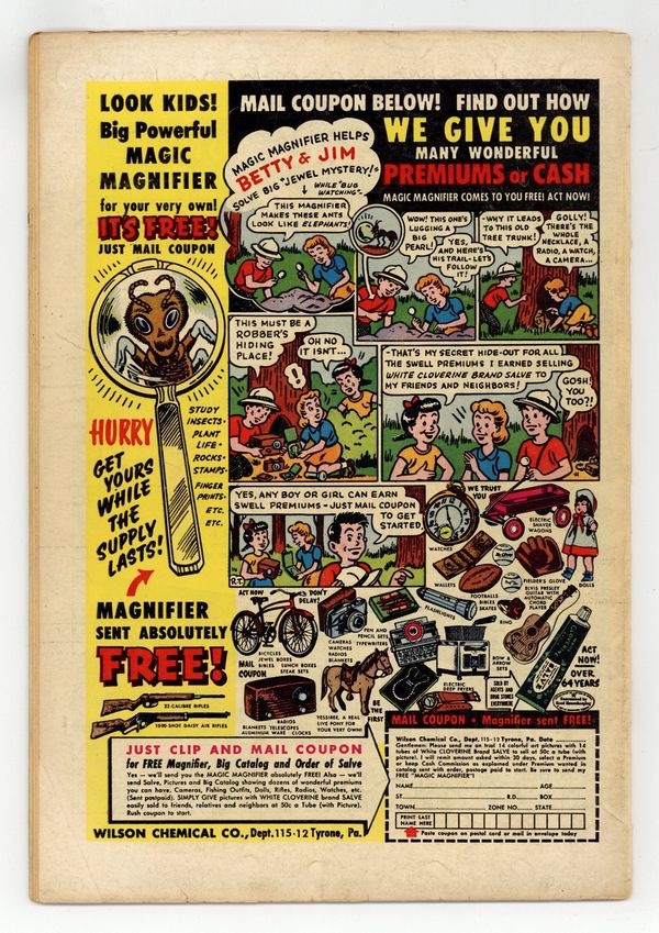 Cover by Sheldon Moldoff. "The Menace of False Face," pencils by Sheldon Moldoff (as Bob Kane), inks by Charles Paris; Batman discovers that False Face has impersonated a wealthy uranium tycoon named P.S. Smithington, and, as Smithington, he has robbed a local Gotham City jewelry store, framing the true Smithington for the crime. 2/3 Strange Laws! story, art by Morris Waldinger. One-page Casey the Cop story by Henry Boltinoff. "Batman Meets Fatman," script by Bill Finger, pencils by Sheldon Moldoff, inks by Charles Paris; A circus clown parodies Batman and is invited by the Caped Crusader to ride in the Batmobile, but when the Caped Crusaders are captured by a gang, it's Fatman to the rescue...with humor! The Flushing Remonstrance public service announcement, art by Bob Brown. Half-page History of Detective Mystery story, art by Morris Waldinger. The Elusive Clue article. "Batman--The Superman of Planet X!", script by France Herron, pencils by Dick Sprang (as Bob Kane), inks by Charles Paris; Batman is transported to the Planet Zur-En-Arrh and meets with the Batman of that planet in order to help him combat an enemy invasion force from another planet. One-page Fingerprint Curios story, art by Morris Waldinger. Half-page Warden Willis story by Henry Boltinoff. 36 Pages, Full Color. Cover price $0.10.