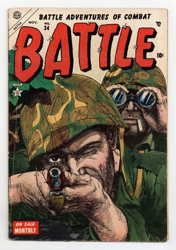$45.00"Prelude to Invasion" (art by John Severin), "Underground" (art by Gene Colan), "T.R.," "Fire Power" (art by Mort Lawrence), and a two-page text story, "Gift of Gab." Cover price $0.10.