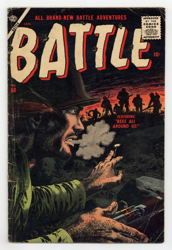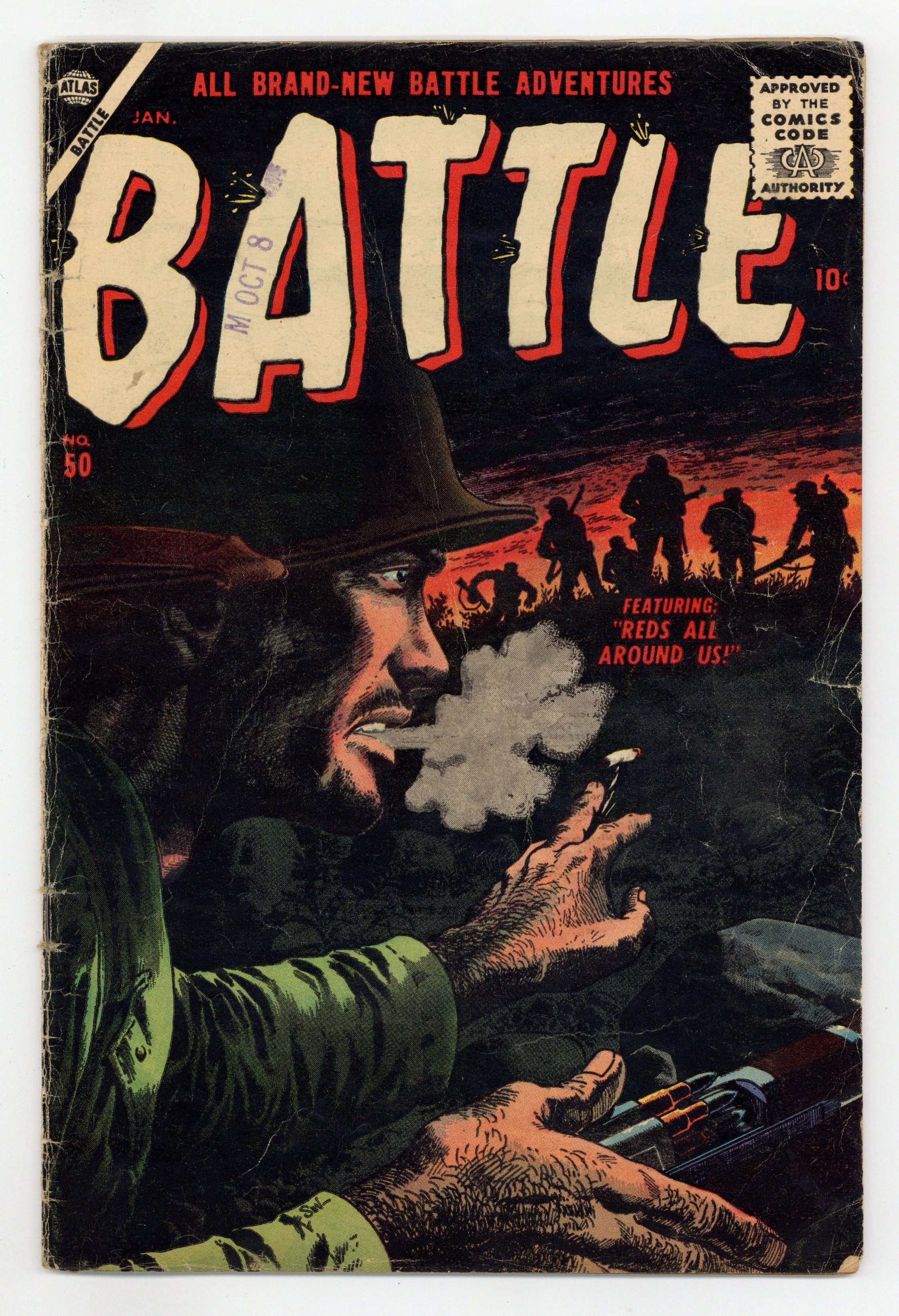 $28.00Follow brave fighting men into action with the following stories "Reds All Around Us", "We Attack At Dawn", "I Was Captured By The Enemy", "Face To Face", and "When the Enemy Comes." This issue also features the text only story "Hayseed Victory." Cover price $0.10.