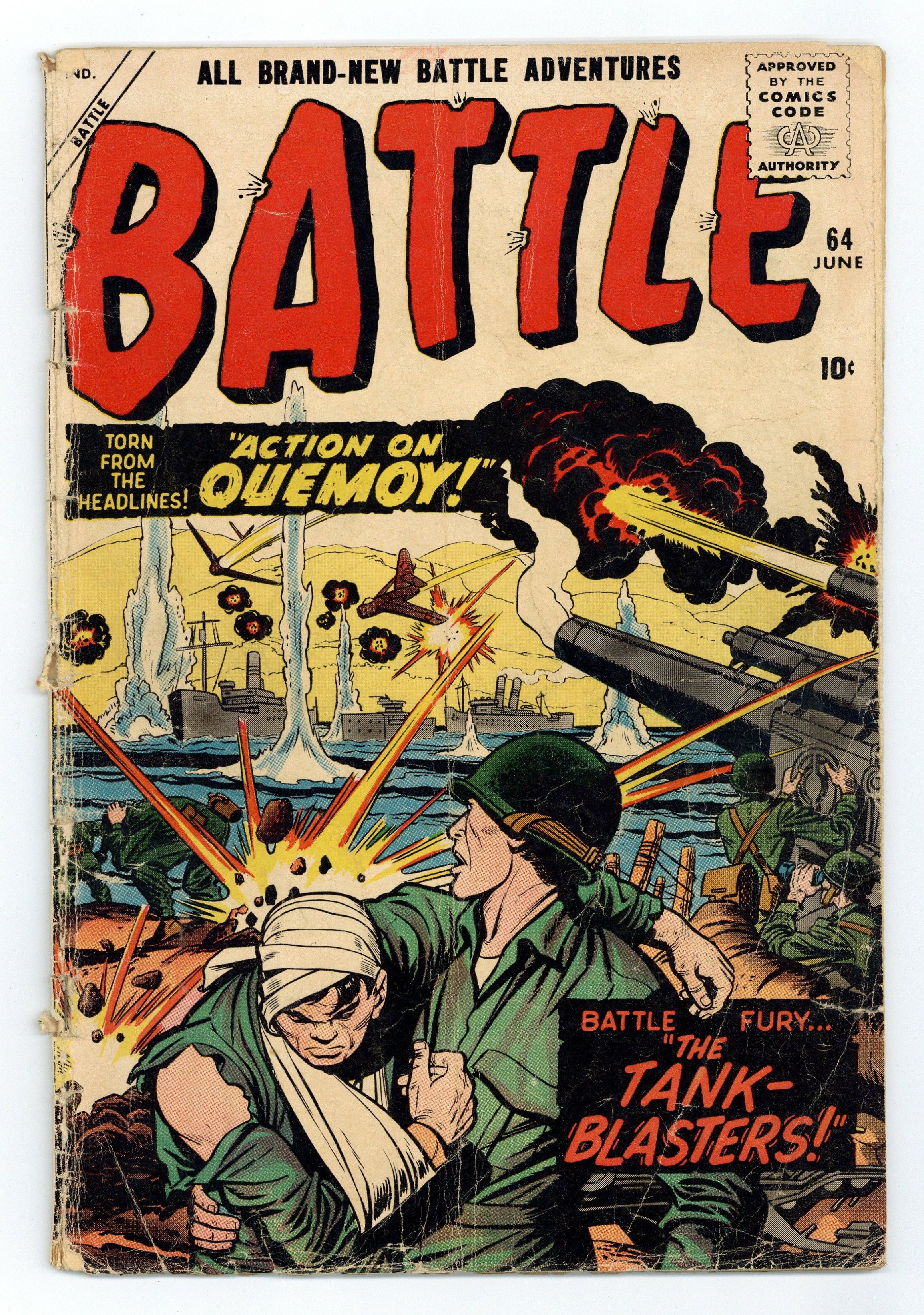 Cover pencils by Jack Kirby. Action on Quernoy!, pencils by Jack Kirby, inks by Christopher Rule. Fortune of War text story. Surrender!, art by Paul Reinman. Juggernaut! starring Combat Casey, art by Jay Scott Pike. The Guerilla! The Tank Blasters!, art by Joe Sinnott. Cover price $0.10.